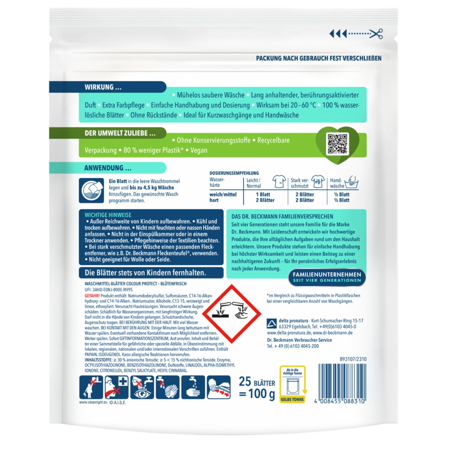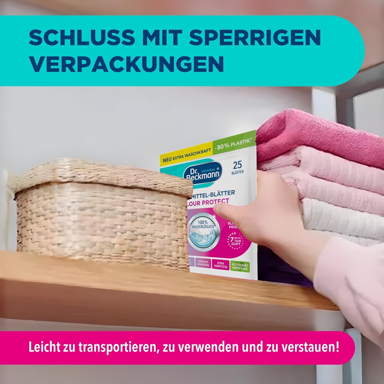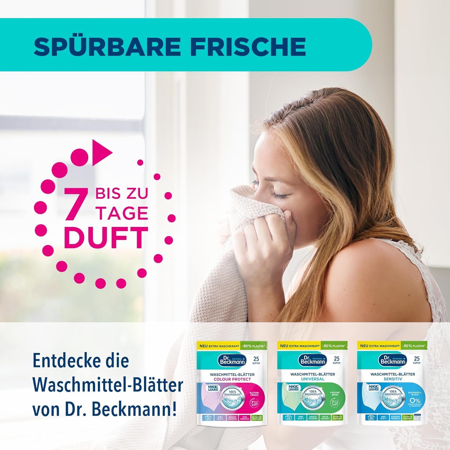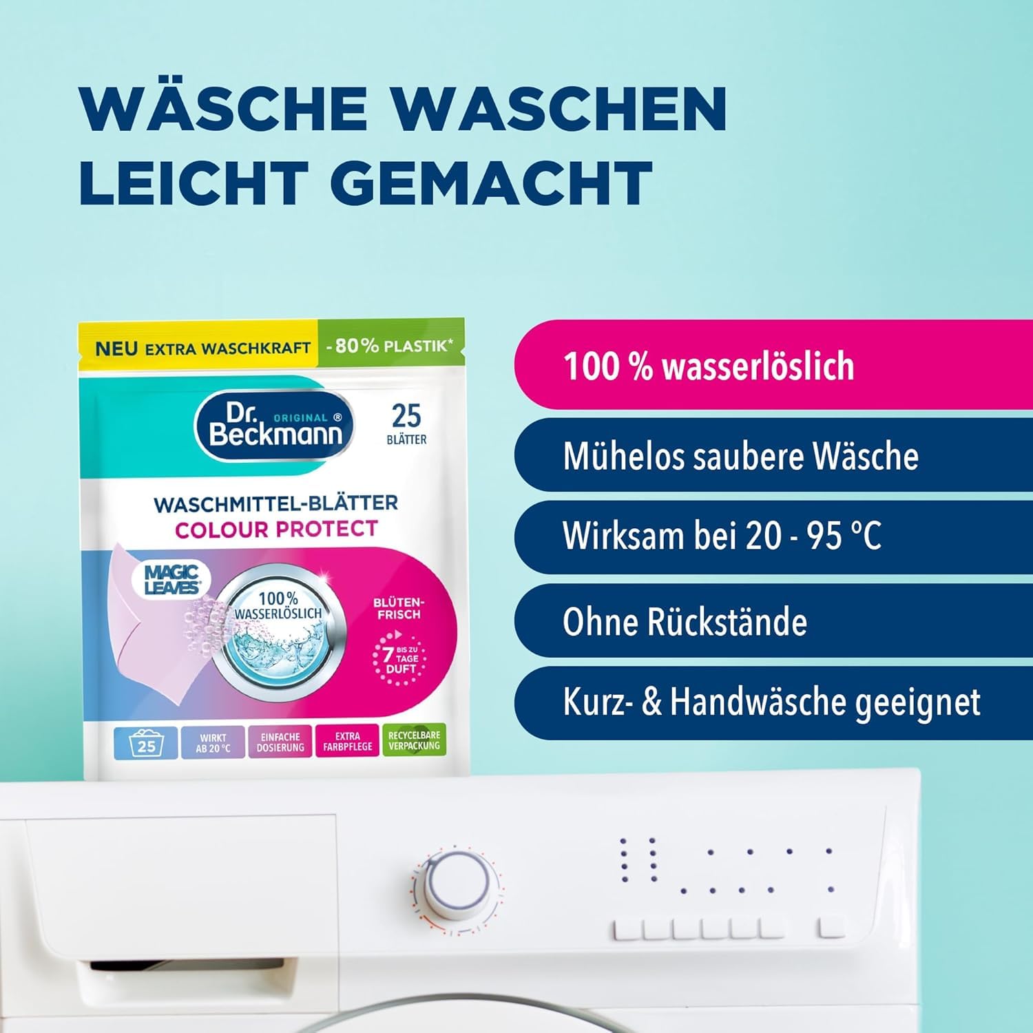 Dr. Beckmann MAGIC LEAVES Waschmittel-Blätter COLOR | vordosierte & wasserlösliche Waschblätter | platzsparend und leicht anzuwenden | 25 Blätter