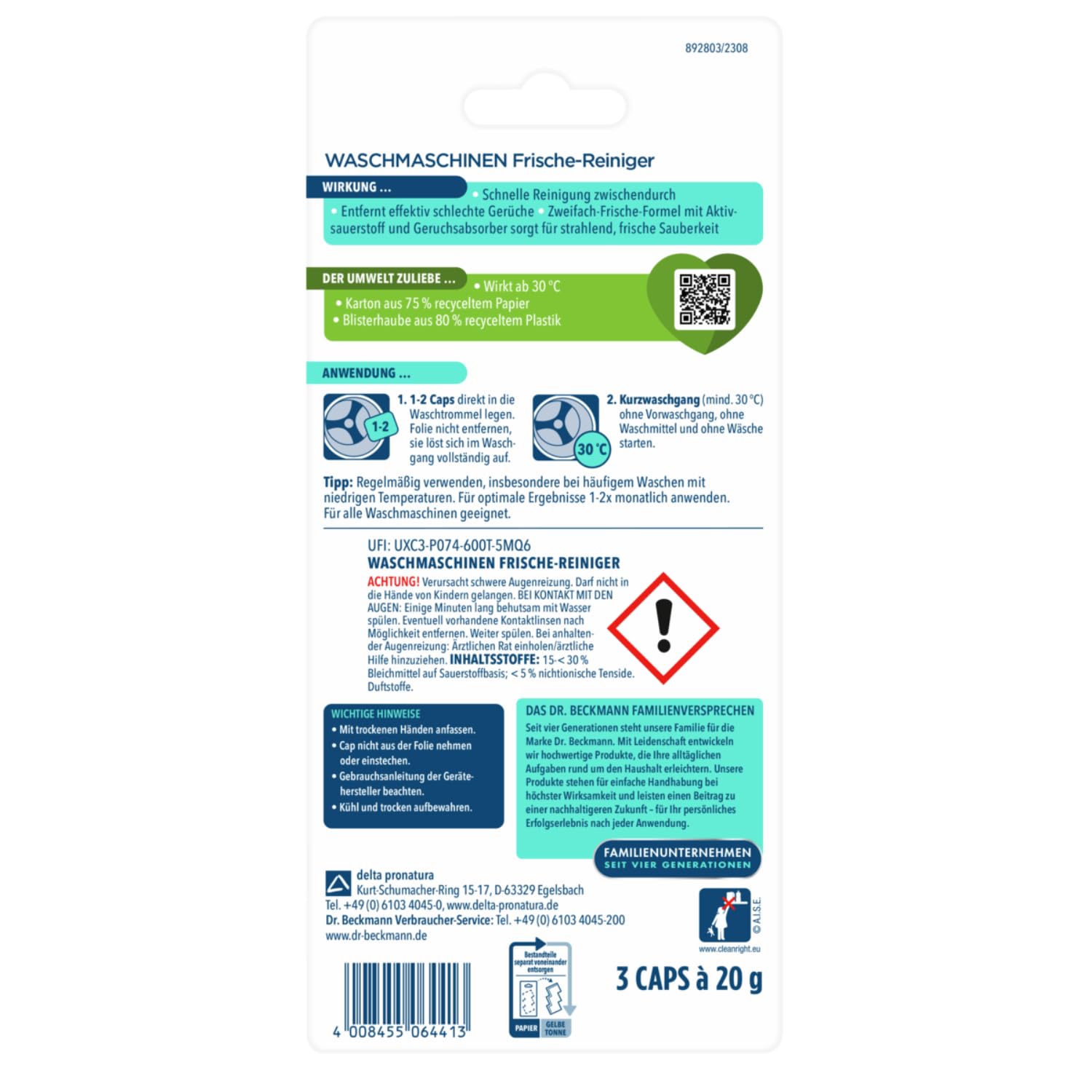 Dr. Beckmann Waschmaschinen Frische-Reiniger | Maschinenreiniger im praktischen Cap-Format | 3 x 20 g
