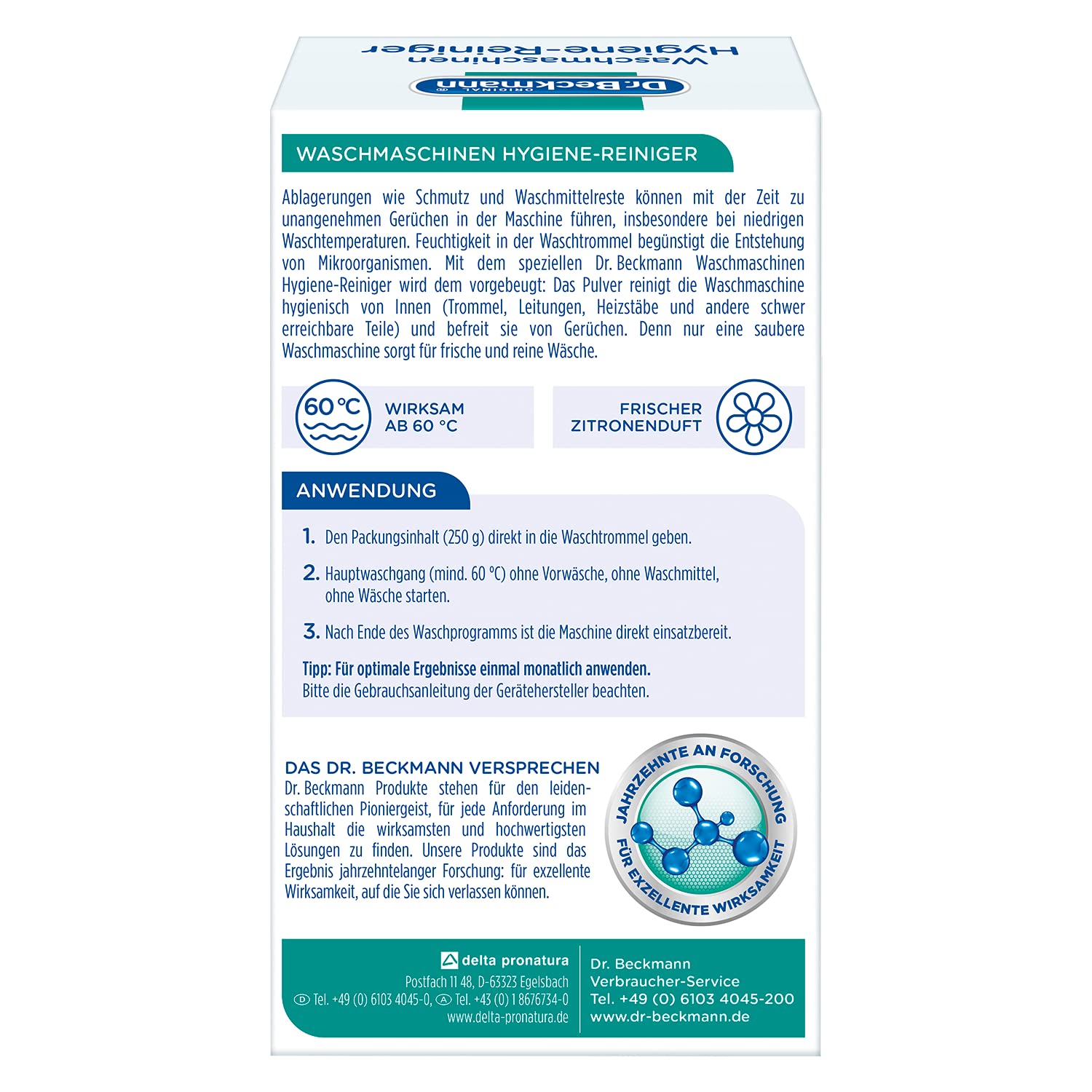 Der Dr. Beckmann Waschmaschinen Hygiene-Reiniger mit Aktivkohle reinigt gründlich das innere Ihrer Waschmaschine und erreicht selbst schwer zugängliche Teile der Waschmaschine. 99,9% der Bakterien und Pilze werden entfernt und durch eine spezielle Hygiene-Frische-Formel werden unangenehme Gerüche vollständig eliminiert.