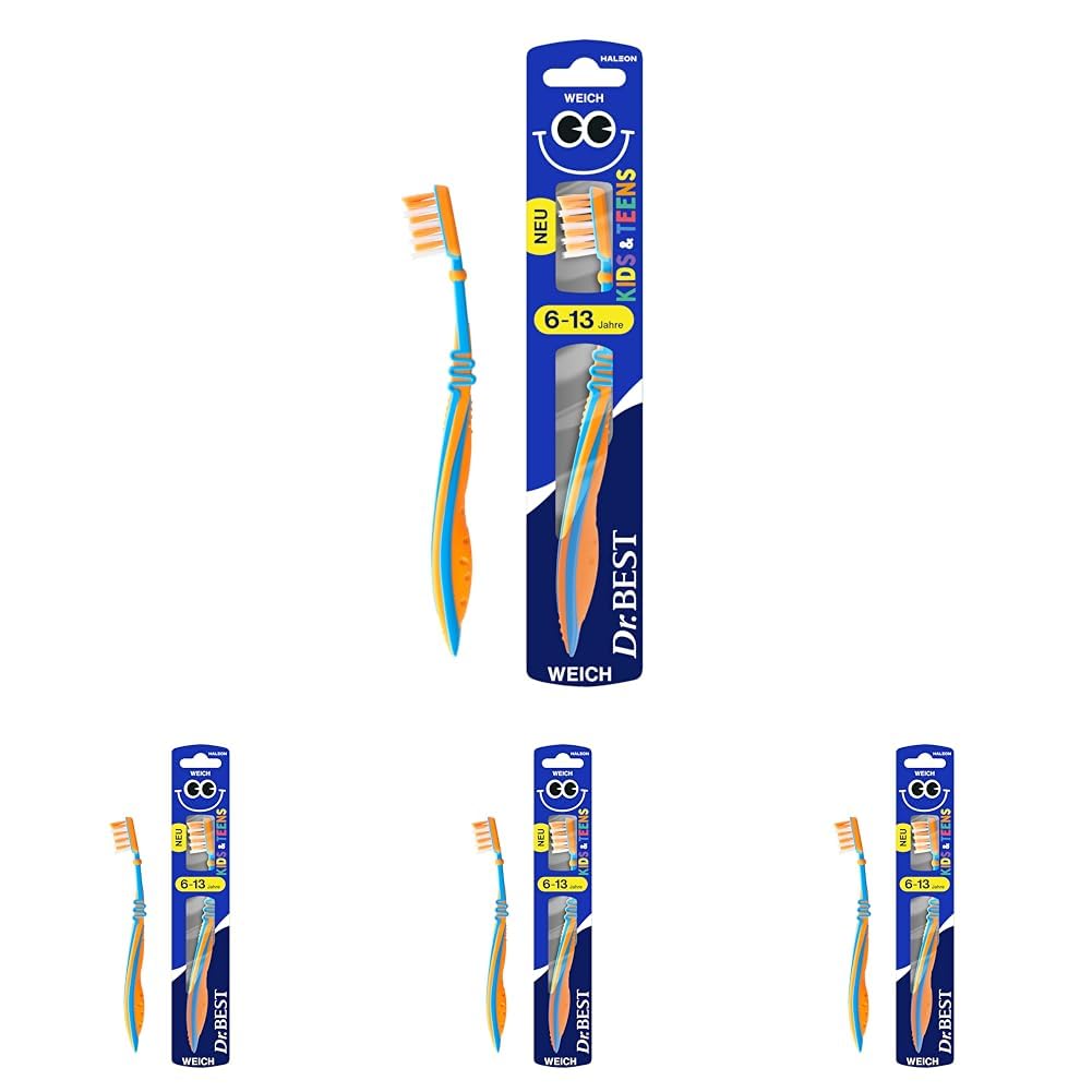 Dr.BEST Kids & Teens Zahnbürste, 6 bis 13 Jahre, Weich, 1 Stück, mit 4 Vorteilen für neue, bleibende Zähne (Packung mit 4)