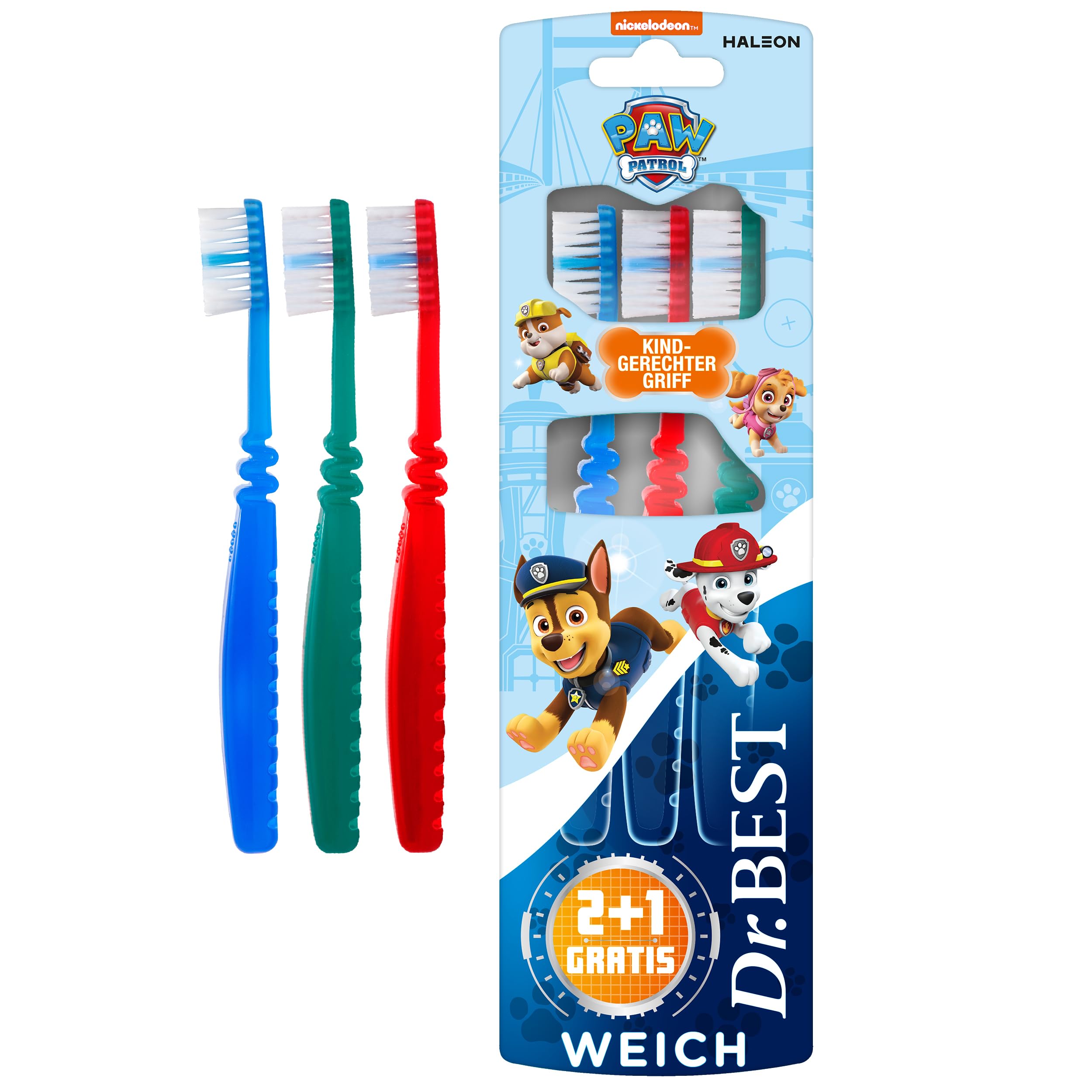Dr.BEST Paw Patrol Zahnbürste, Weich (2 Stück + 1 Stück Gratis), weiche Borsten und kindgerechter Griff