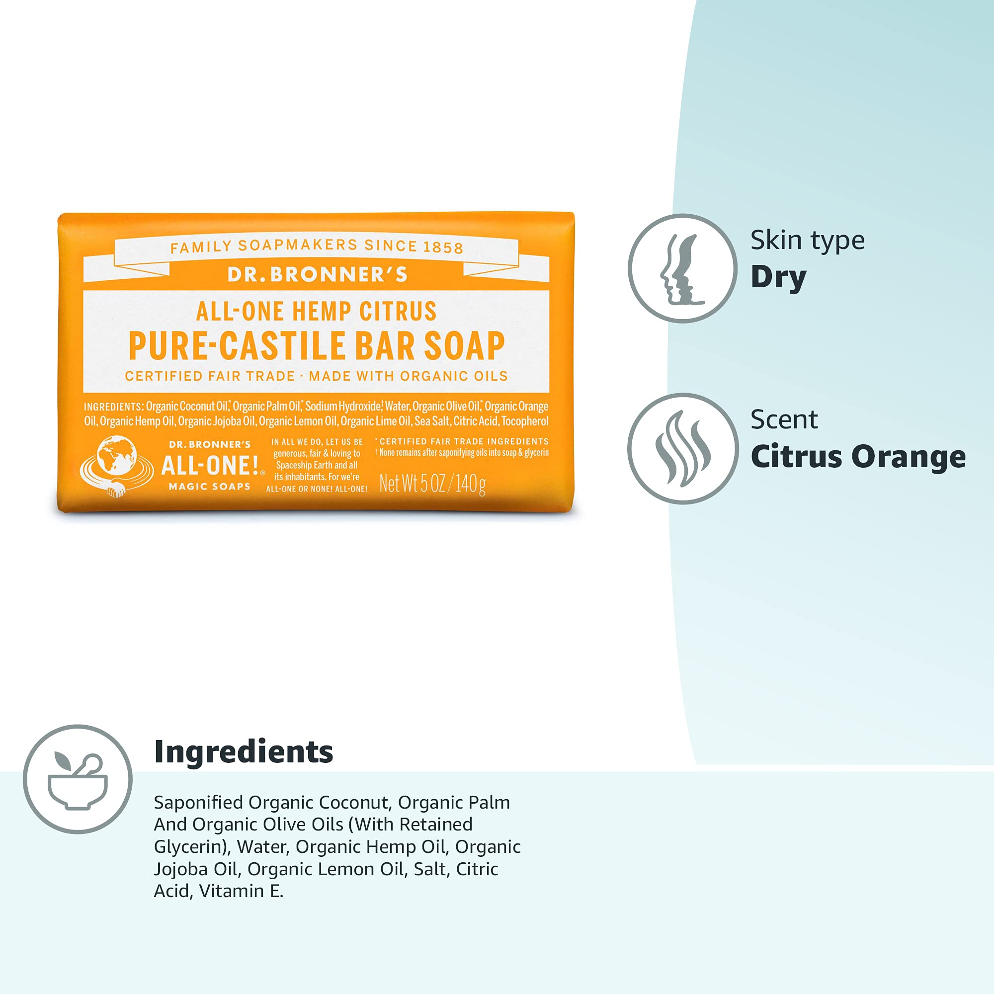 Dr. Bronner's Citrus Bar Seife aus biologischen Inhaltsstoffen 140 g (Packung mit 2)