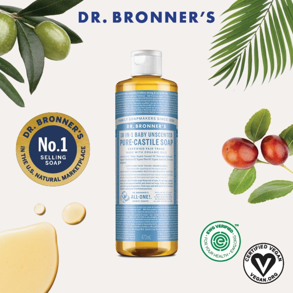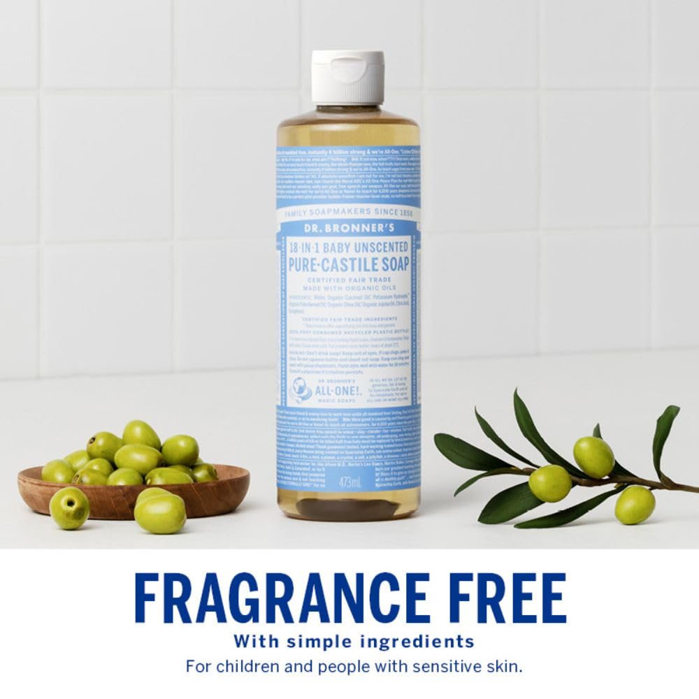 Dr. Bronner 18-in-1 Hemp Un-Scented Baby-Mild Pure-Kastilien Flüssigseife, 16-Unzen-Flasche