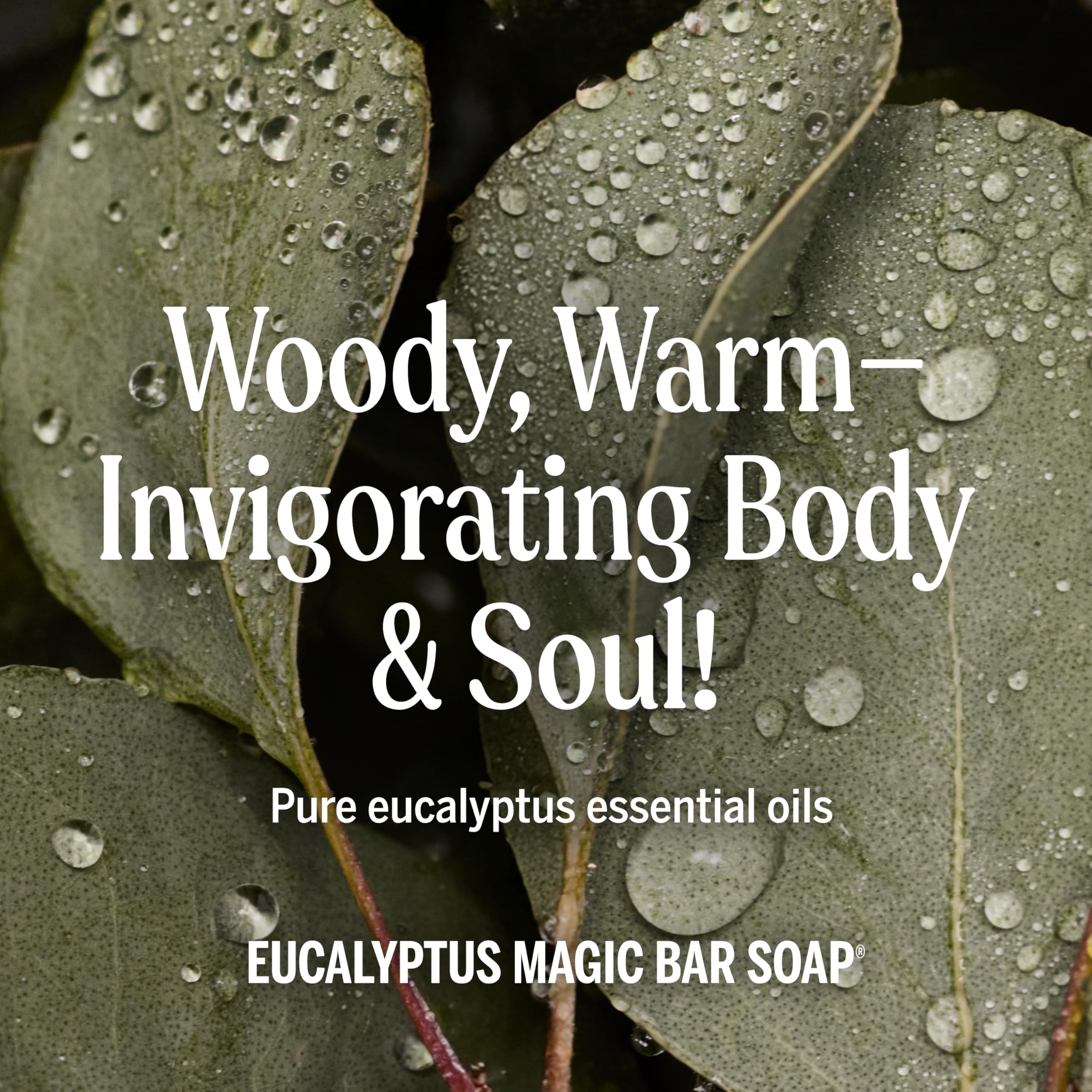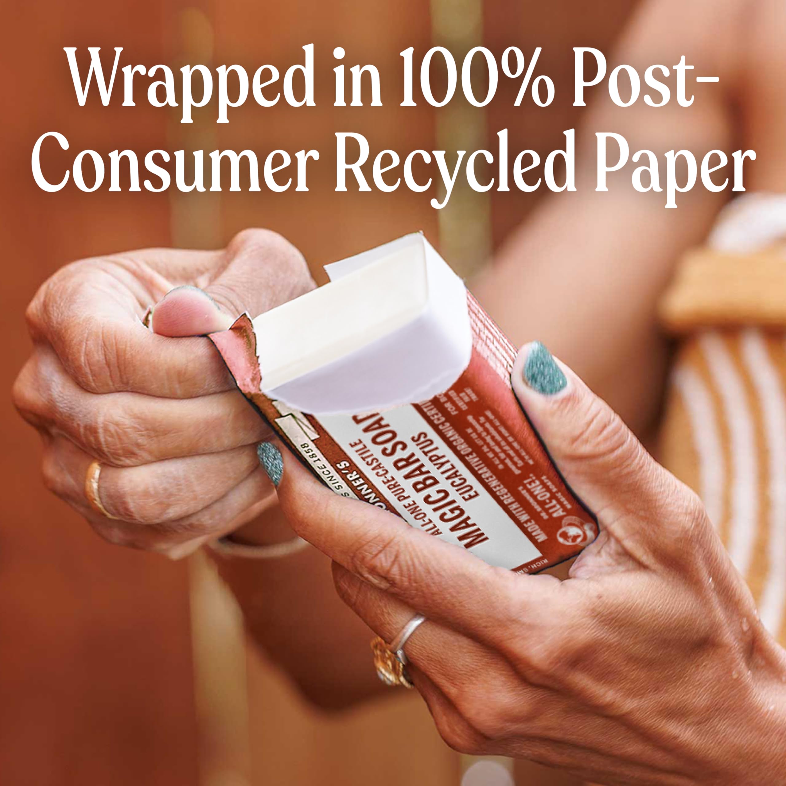 Erdig und warm, mit einem kraftvollen Menthol-Burst, um Staus zu beseitigen und den Geist zu fokussieren. Unser Eukalyptus ist rein mit Bio-Eukalyptusöl duftet und besteht aus zertifizierten Fair-Trade-Inhaltsstoffen und Bio-Hanföl für einen weichen, glatten Schaum, der Ihre Haut nicht austrocknet. 100 % biologisch abbaubar in einer 100 % recycelten Verpackung. Dr. Bronner's Pure-Castile Bar Soaps sind vegan, sanft und vielseitig. Perfekt zum Waschen von Gesicht, Körper und Haaren. Ohne synthetische Konservierungsstoffe, Reinigungsmittel oder Schaummittel sind sie sogar sanft genug für empfindliche Haut. Sie werden Ihre Haut weich, glatt, hydratisiert und mit Feuchtigkeit versorgt. Unsere Pure-Castile Seifen werden nie an Tieren getestet und sind völlig tierversuchsfrei. All-One!