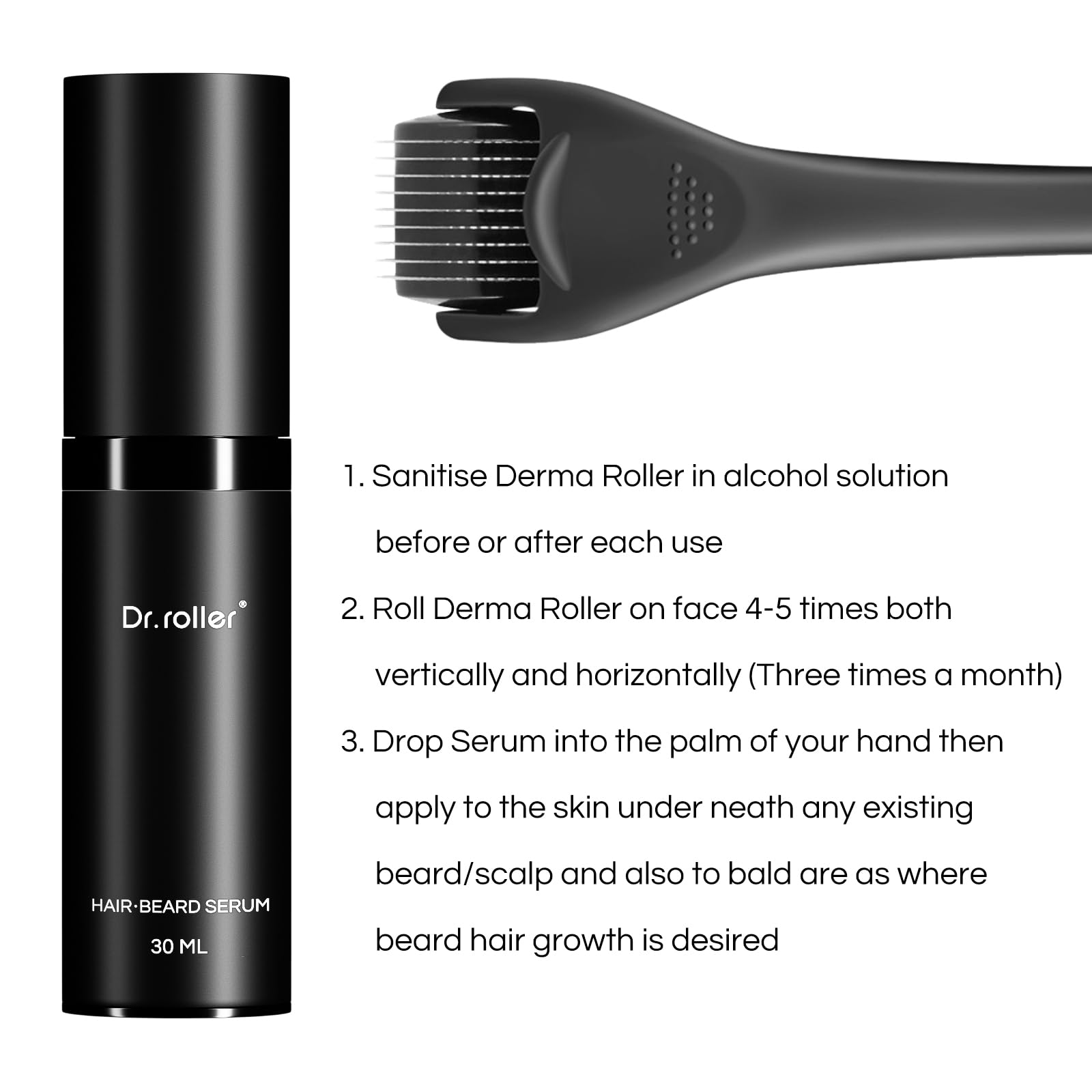 Dr. Roller Bartwuchs Set – Derma Roller 0,5 mm & Bartöl-Serum | Stimuliert Bartwuchs & Haarwachstum für Männer & Frauen