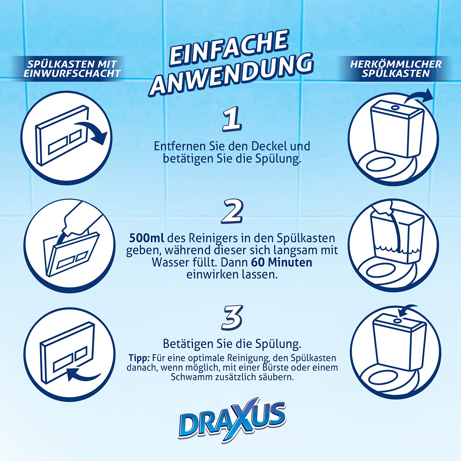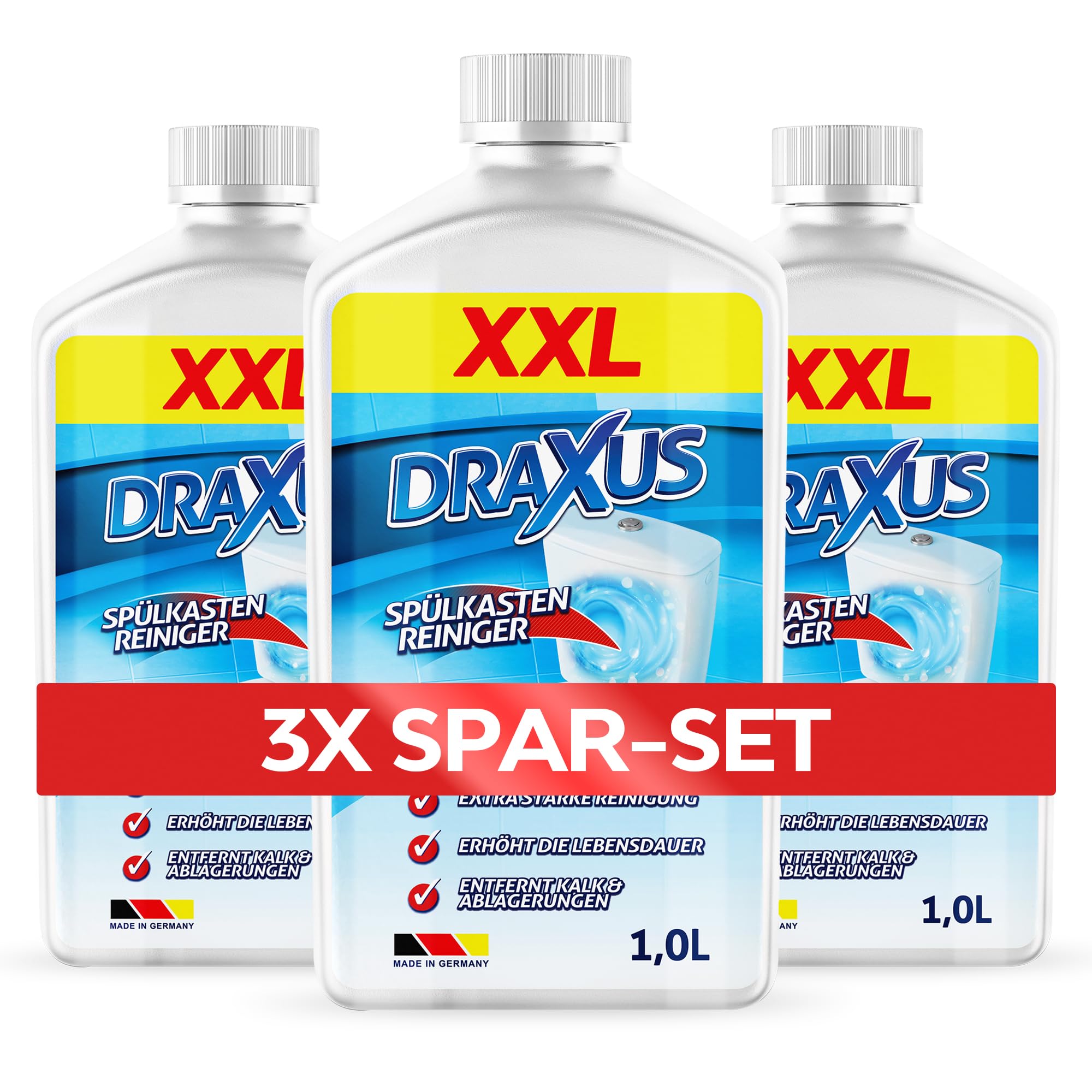 DRAXUS Spülkasten Reiniger in der XXL Flasche (1,0L) I Extra starker Spülkasten Entkalker I Entfernt Kalk und Ablagerungen gründlich (3x Spar-Set)