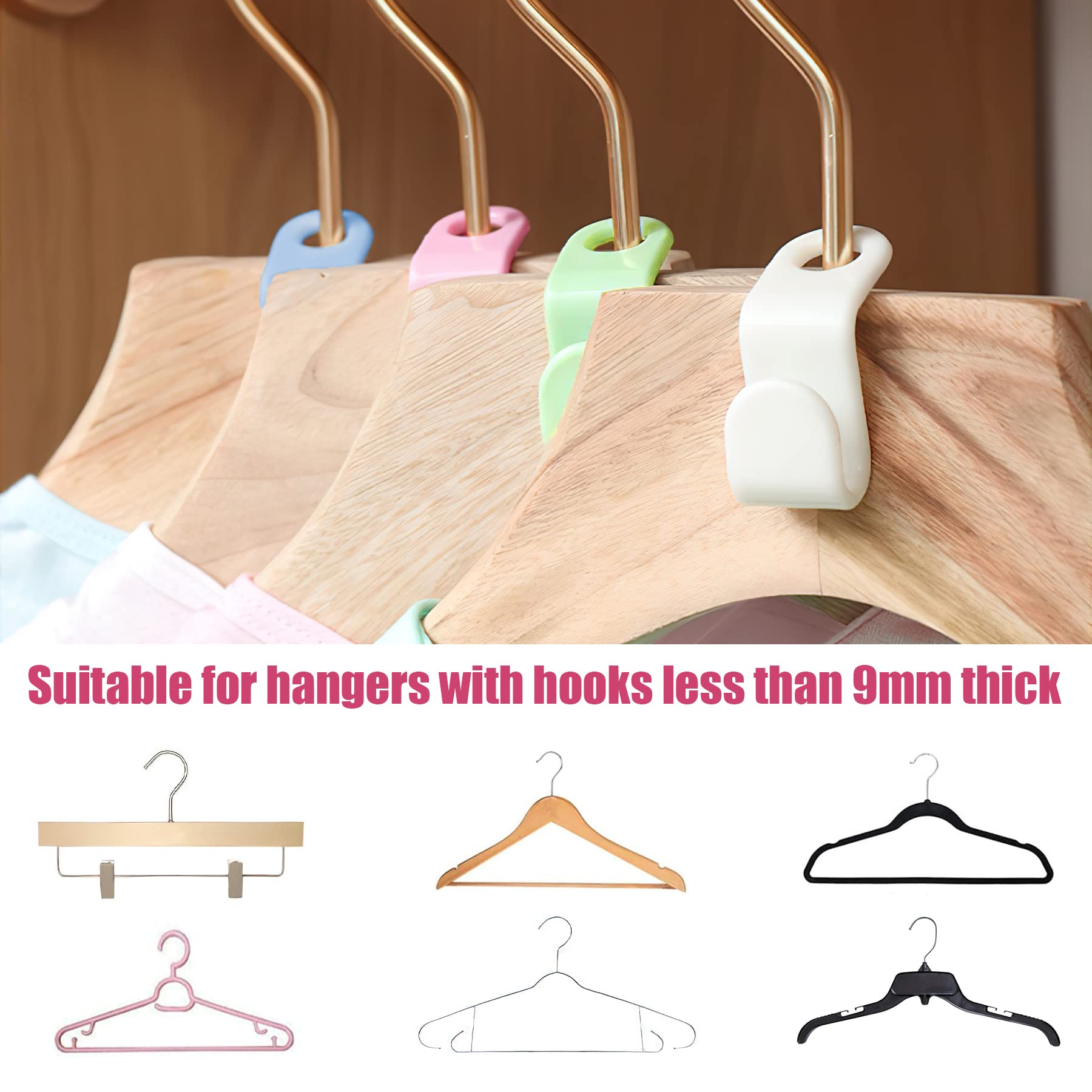 - ????【Superpraktisch】✔️Die Kleiderbügelhaken bringen Sie die Kleiderbügel vertikal an, um den Platz unter Ihrem Kleiderschrank optimal zu nutzen. Diese Kleiderbügelhaken sind sehr nützlich für die Aufbewahrung von Kleidung.