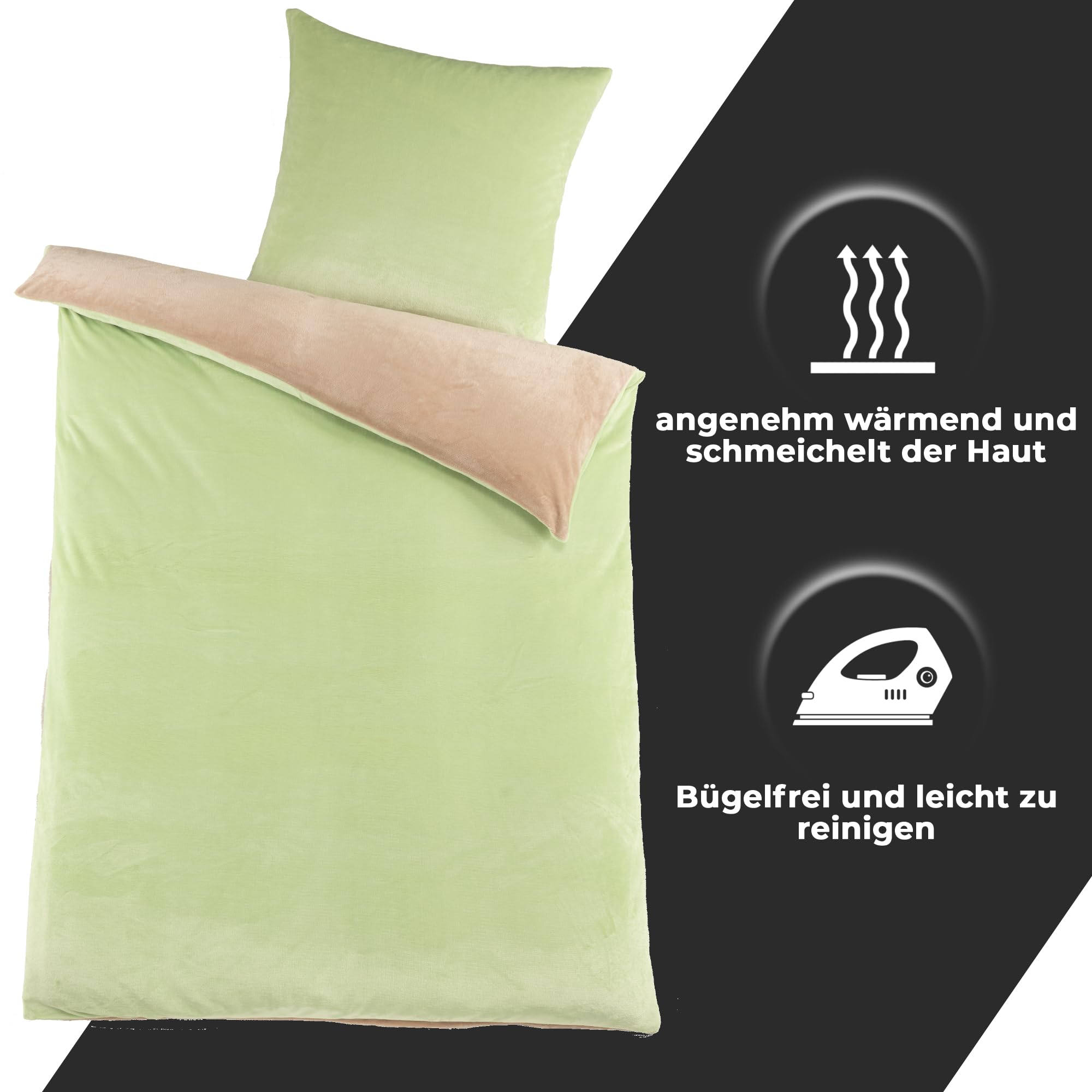 DreamHome Winter Wende Plüsch Bettwäsche 135x200 Nicky-Teddy Cashmere Touch Coral Fleece Bettdezug + Kissenbezug 80x80, Farbe:BEIGE-GRÜN
