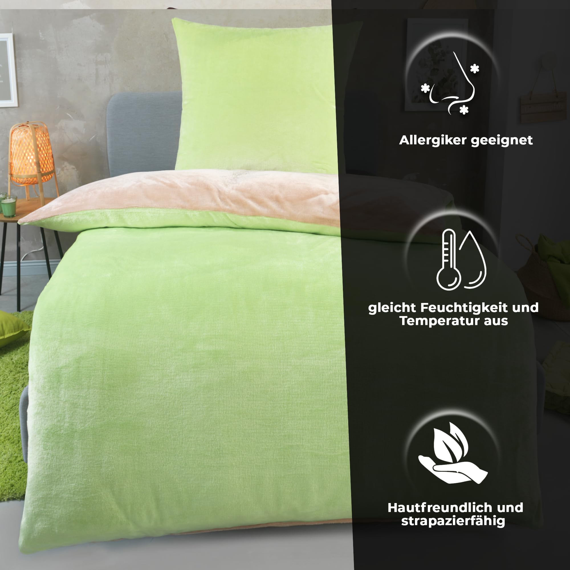 bügelfreihautfreundlich & pflegeleichtfeuchtigkeitsregulierendatmungsaktiv100% Polyester Cashmere TouchGeeignet für Allergikermit Reissverschlussabsolut flauschig, weich und warm, Wärmer z.B. als vergleichbare BIBER Bettwäsche