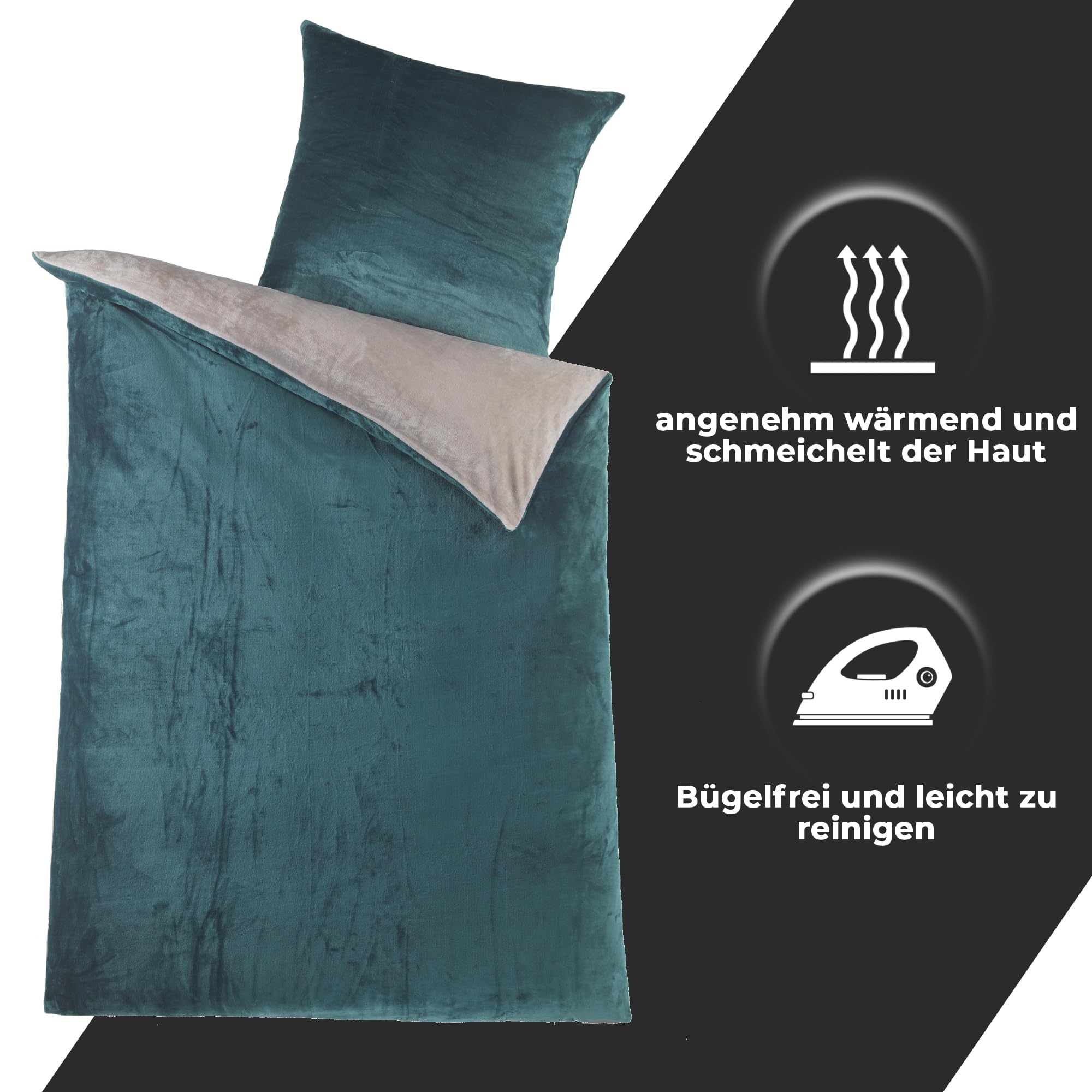 DreamHome Winter Wende Plüsch Bettwäsche 135x200 Nicky-Teddy Cashmere Touch Coral Fleece Bettdezug + Kissenbezug 80x80, Farbe:smaragdgrün-Silber