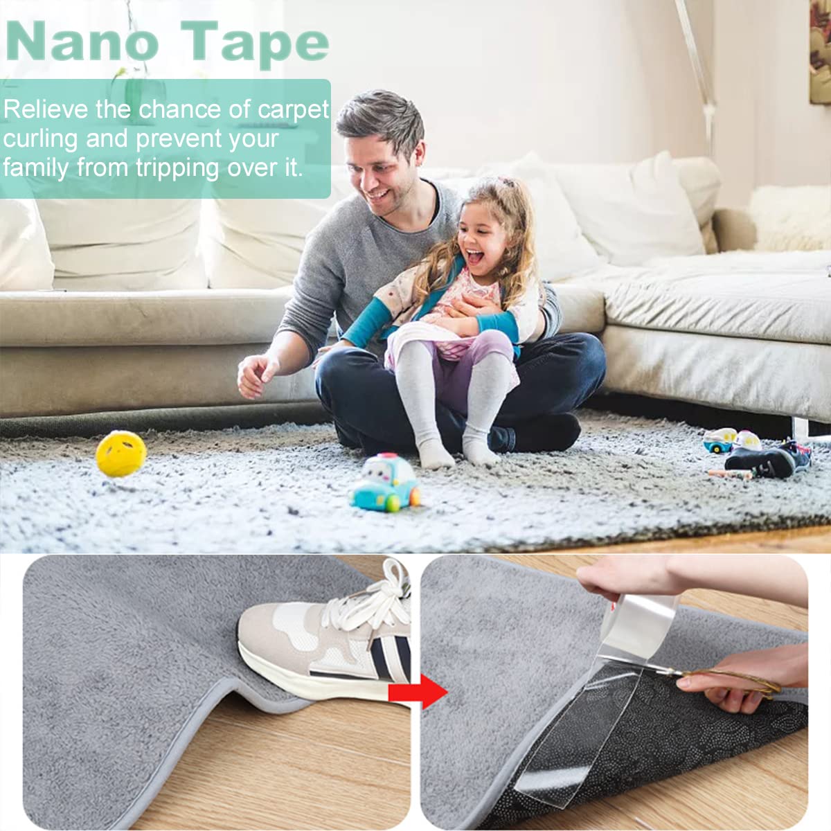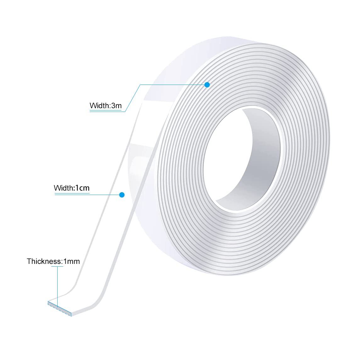 5M Doppelseitiges Klebeband Transparent,Nano Klebestreifen Doppelseitig Wiederverwendbar Beidseitiges Klebeband Schmal Spurloses Breite 1cm Für Teppiche, Bilderrahmen Und Kissen