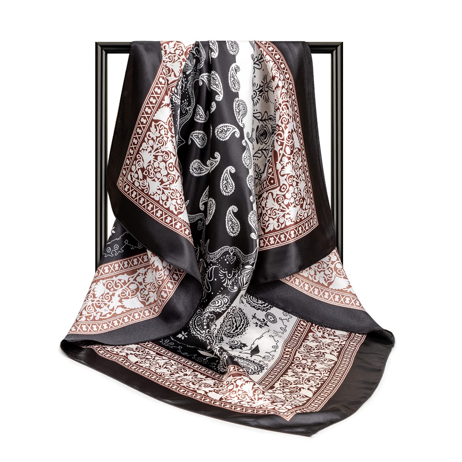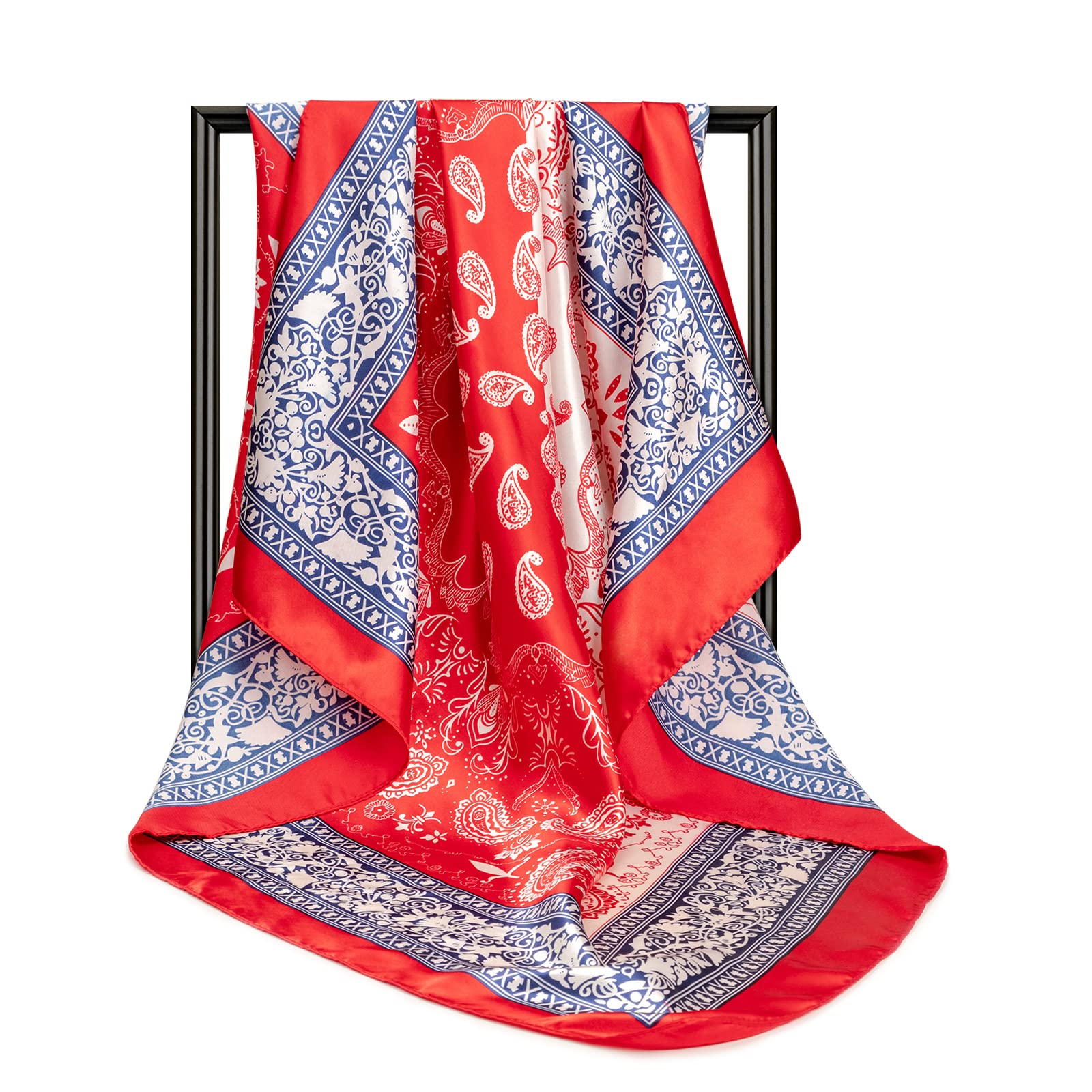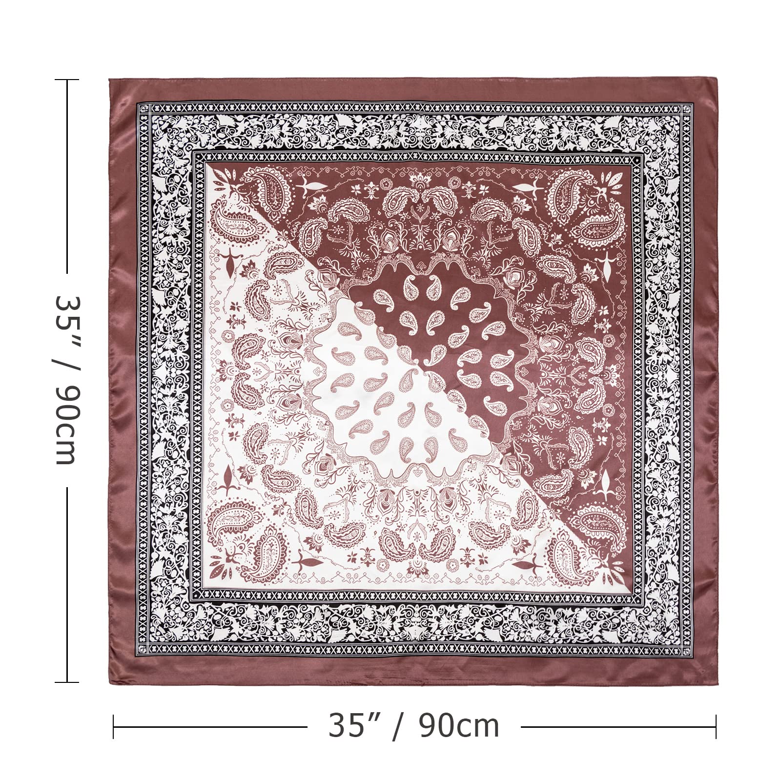 DRESHOW 90x90cm Grosse Quadratische Schals für Damen 4 Stück Seide Kopftuch Bandanas Haartuch Halstuch Haarschmuck
