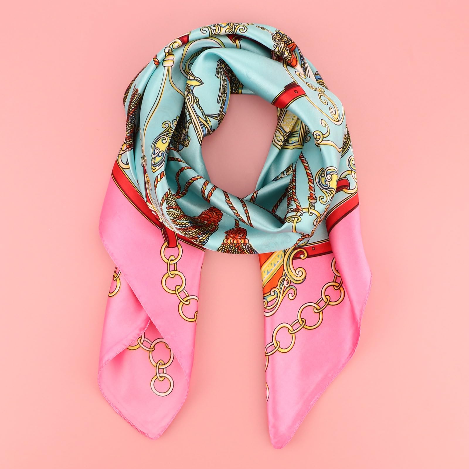 DRESHOW 90x90cm Grosse Quadratische Schals für Damen 4 Stück Seide Kopftuch Bandanas Haartuch Halstuch Haarschmuck