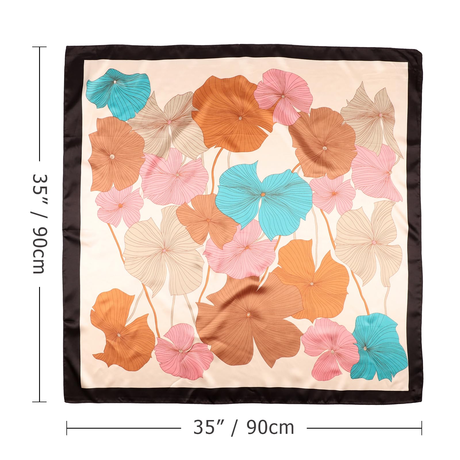 DRESHOW 90x90cm Grosse Quadratische Schals für Damen 4 Stück Seide Kopftuch Bandanas Haartuch Halstuch Haarschmuck