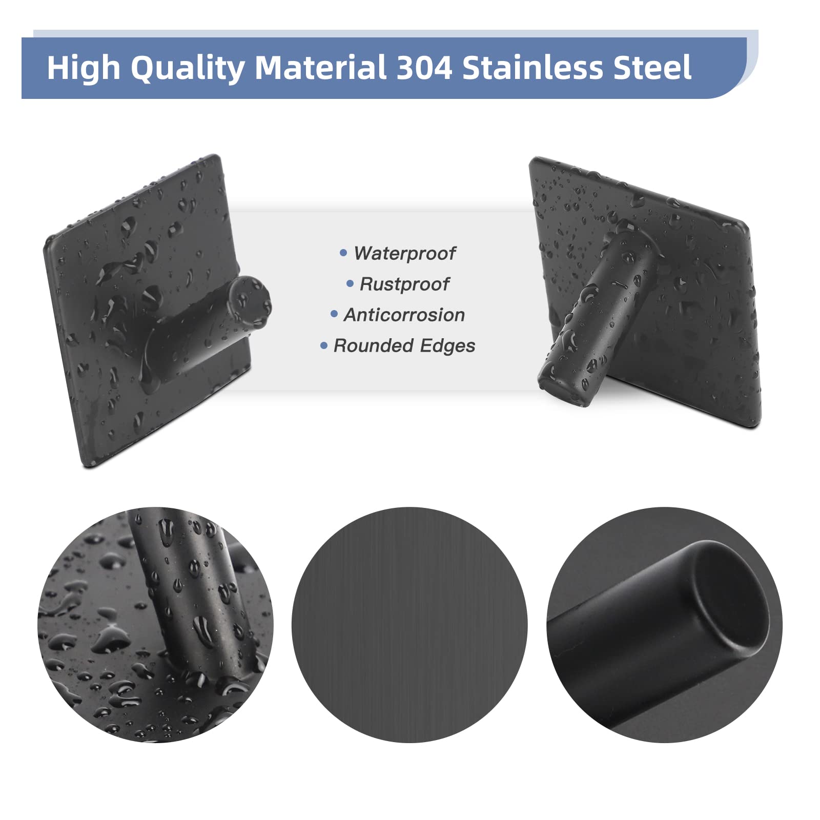 Dripex Haken Selbstklebend Klebehaken Edelstahl Ohne Bohren Handtuchhaken für Küche und Bad Schwarz 2 Stück