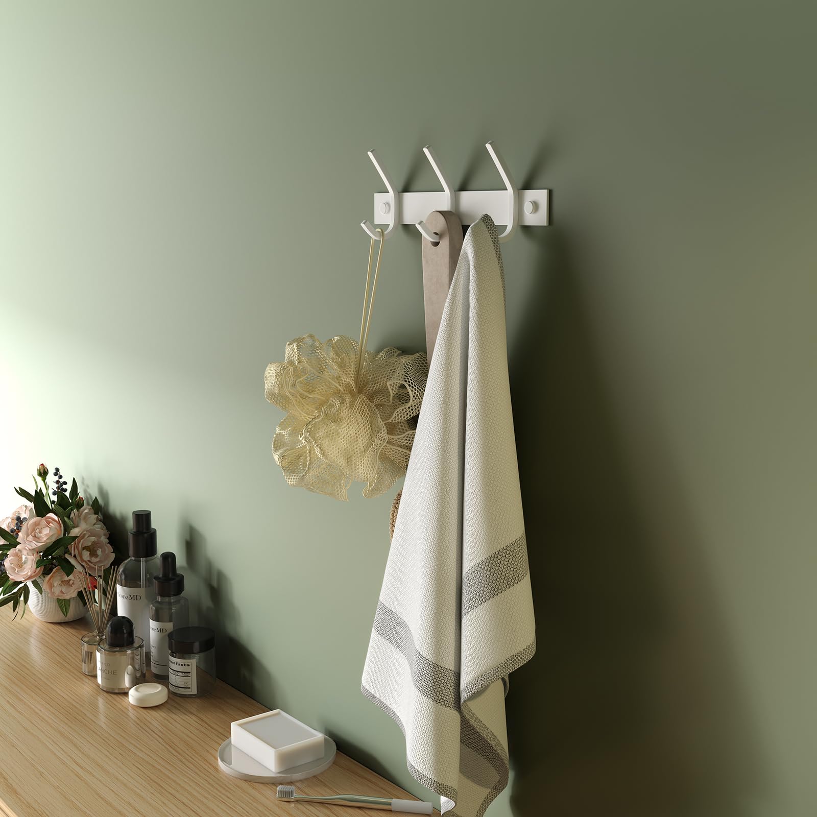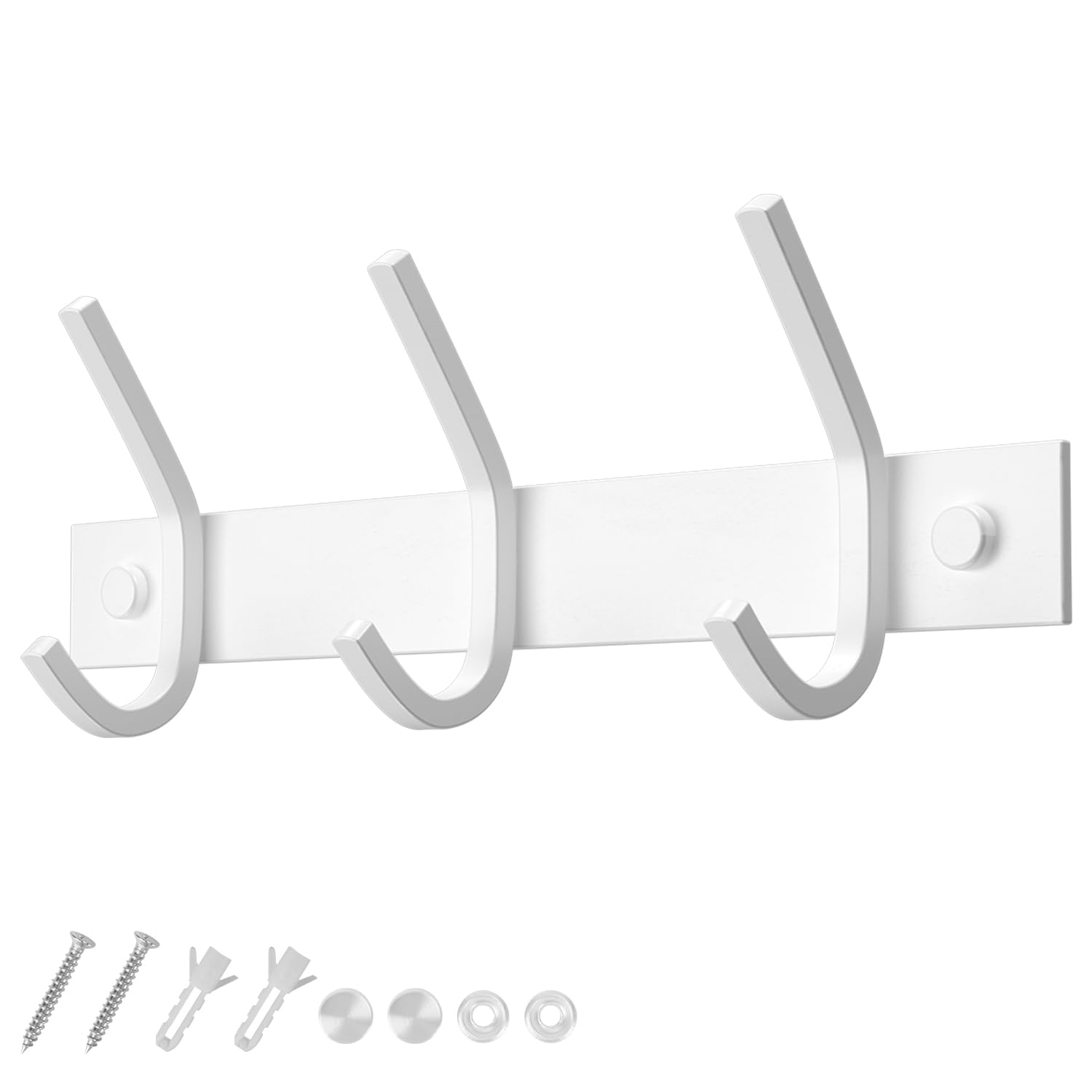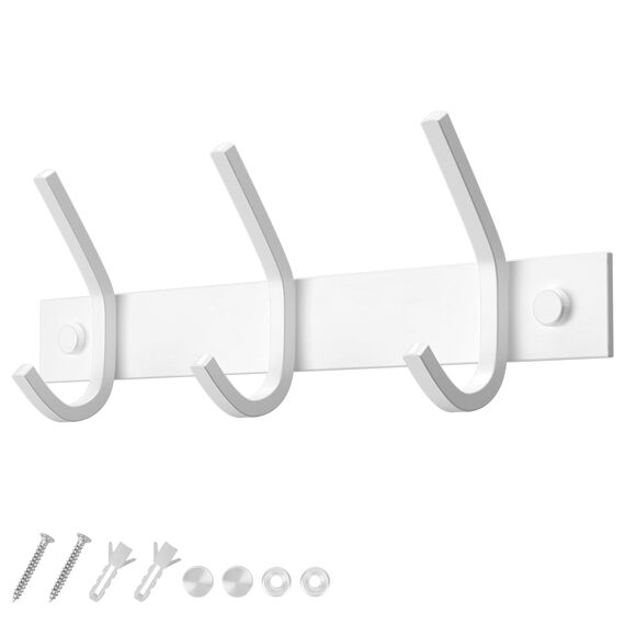 Dripex Garderobenleiste Rostfrei Edelstahl Kleiderhaken Garderobenhaken Doppelhaken bis zu 20kg belastbar Haken Weiss, 3 Haken