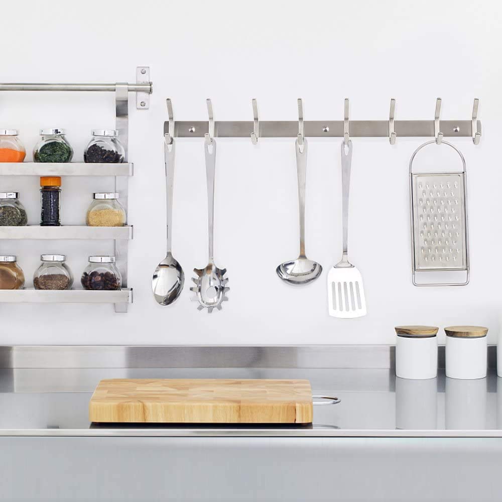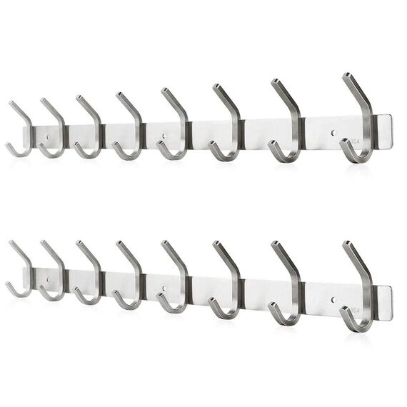 Dripex Hakenleiste Kleiderhaken 2 Pack Garderobenhaken Edelstahl Handtuchhalter Rostfrei 59cm Wandhaken mit 8 Haken Badzimmer Küche Tür
