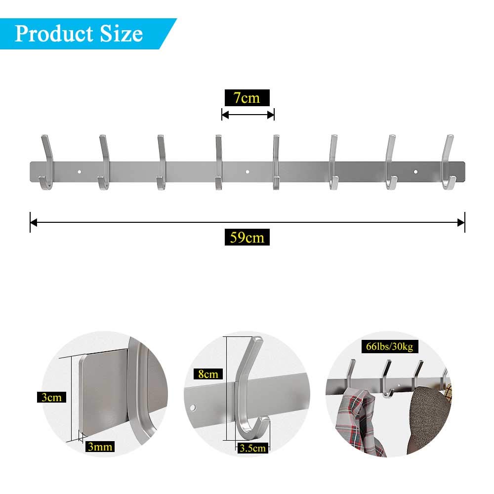 Moderner look das minimalistische design im gebürsteten look passt zu jedem raum, vom badezimmer bis zum flur. Grösse: 6 haken: 43 cm lang, 8 haken: 59 cm lang. Mit einem abstand von ca. 7 cm ca. 30 kg ladbar: es kann nicht nur für hängende handtücher und hut verwendet werden, sondern auch für schwere jacken, mäntel und andere schwere gegenstände. Hochwertige materialien aus 304 edelstahl, geruchlos, nicht giftig und langlebig, um qualität und langlebigkeit zu gewährleisten. Hänge fast alles hält ihr zimmer oder ihr büro unordentlich frei, finden sie ihre artikel schnell, da sie auf ihrem wandhakenregal gut organisiert sind. Dripex haken schiene rostfeste edelstahl -stahlhaken haken gebürstete doppelhaken bis zu 30 kg ladungskapazität 8 haken 2 pack silber.
