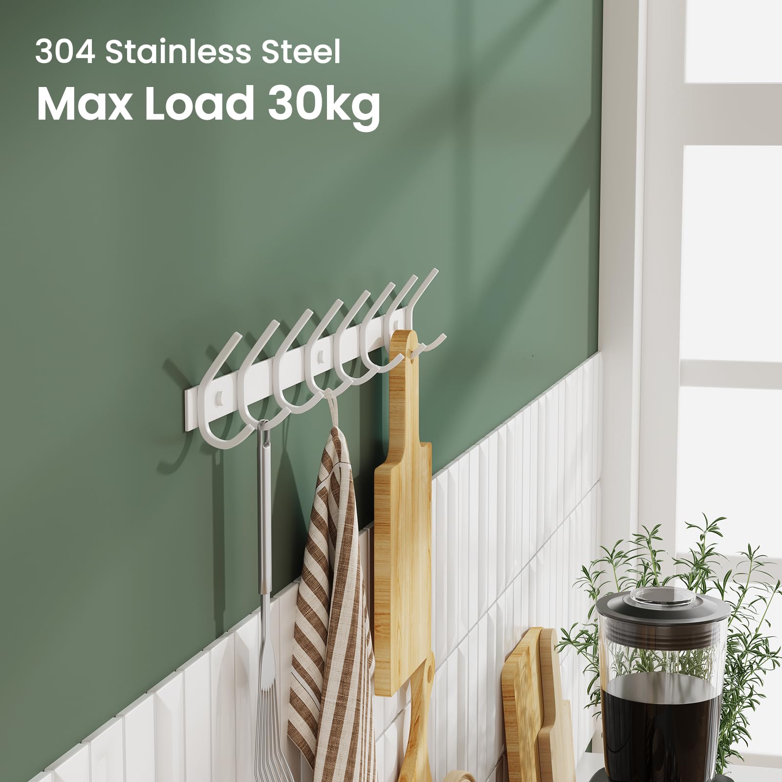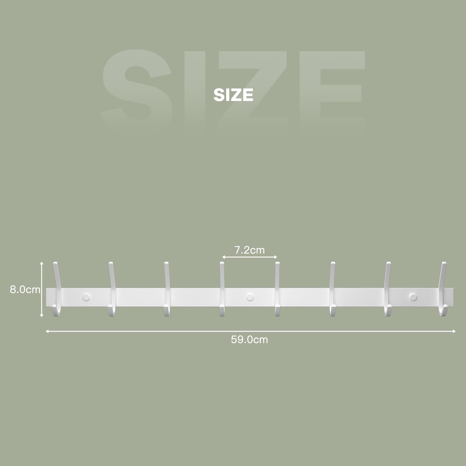 Dripex Garderobenständer aus Edelstahl, Kleiderhaken, Doppelhaken, Tragkraft bis 30 kg, weiss, 8 Haken. Moderner Look: Das minimalistische Design in Weiss-Matt-Optik passt in jeden Raum, vom Badezimmer bis zum Flur. Grösse: 6 Haken: 43 cm Länge; 8 Haken: 59 cm lang. Mit einem Abstand von ca. 7 cm. Ca. 30 kg Tragfähigkeit: Es kann nicht nur zum Aufhängen von Handtüchern und Hüten, sondern auch für schwere Jacken, Mäntel und andere schwere Gegenstände verwendet werden. Hochwertige Materialien: Hergestellt aus Edelstahl 304, geruchlos, ungiftig und langlebig, um Qualität und Haltbarkeit zu gewährleisten. Hängt fast alles auf: Halten Sie Ihr Zimmer oder Büro sauber und finden Sie Ihre Gegenstände schnell, da sie an Ihrer Wandhakenleiste gut organisiert sind.