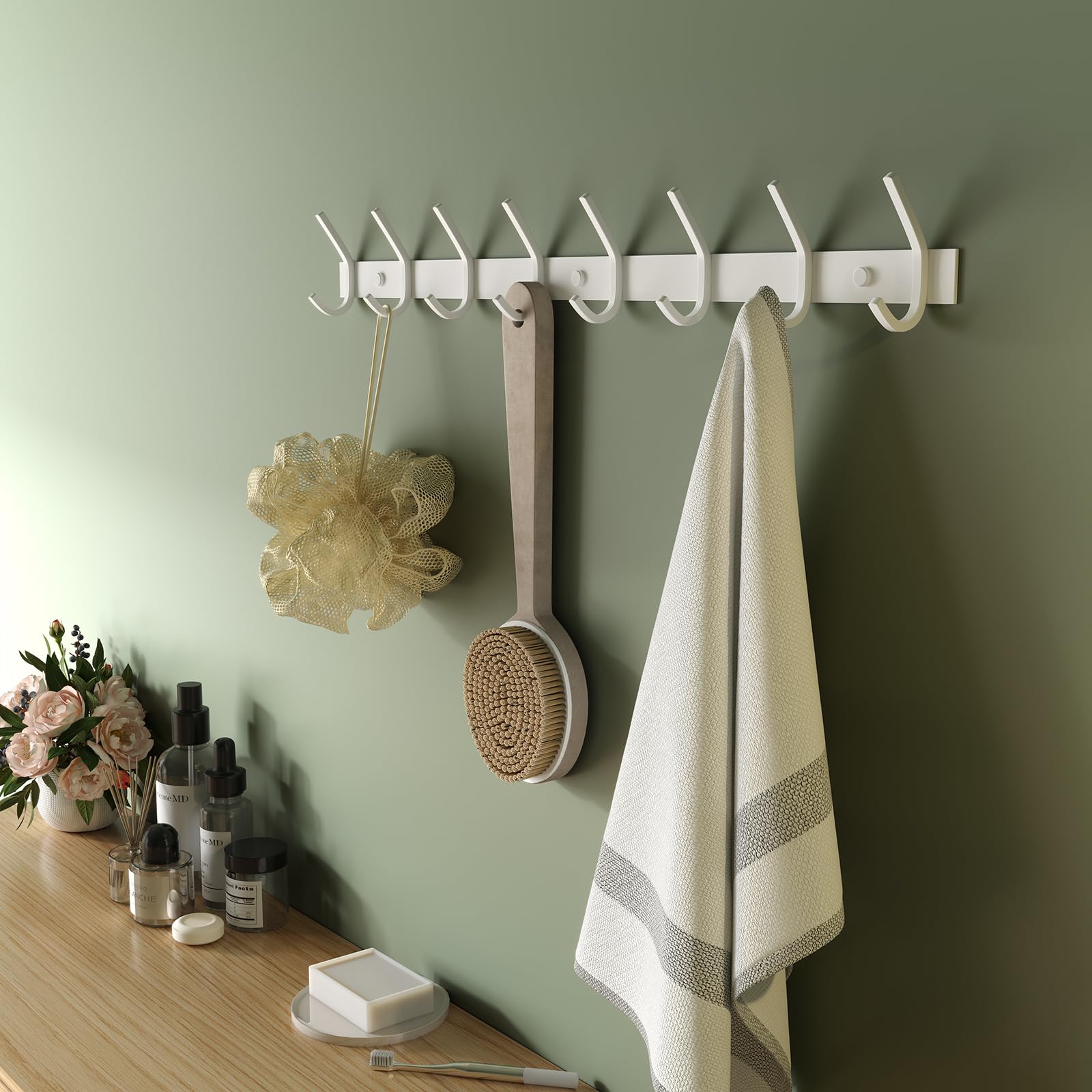 Dripex Garderobenleiste Rostfrei Edelstahl Kleiderhaken Garderobenhaken Doppelhaken bis zu 30kg belastbar Haken Weiss, 8 Haken