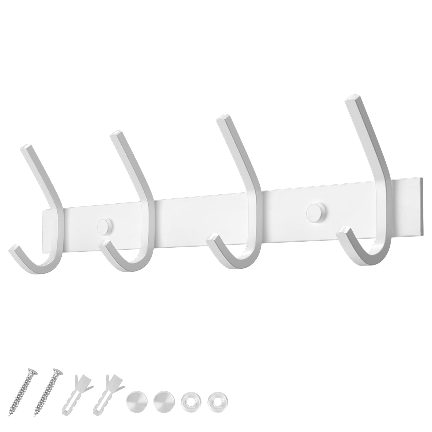 Dripex Garderobenleiste Rostfrei Edelstahl Kleiderhaken Garderobenhaken Doppelhaken bis zu 20kg belastbar Haken Weiss, 4 Haken