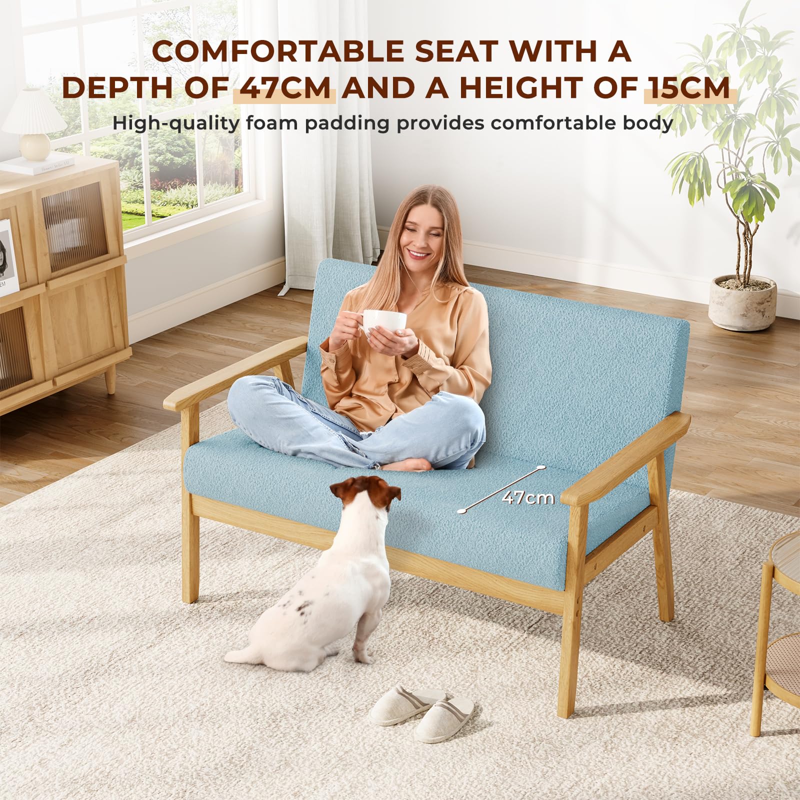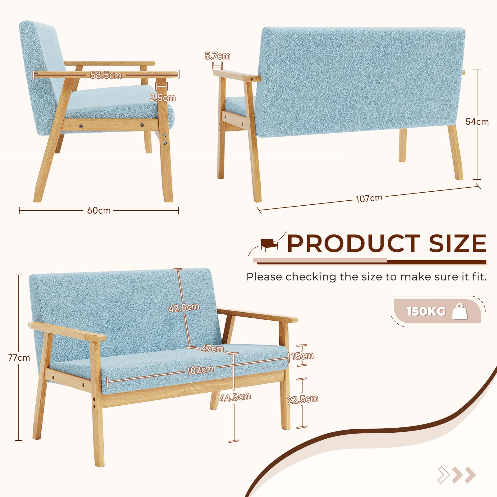 Dripex 2 Sitzer Sofa, Kleine Sofa mit Holzrahmen, Loungesofa 2er Couch, Modern und Skandinavisch, Doppelsofa aus Teddysamt, für Wohnzimmer Schlafzimmer Büro, 107x60x77cm, Hellblau