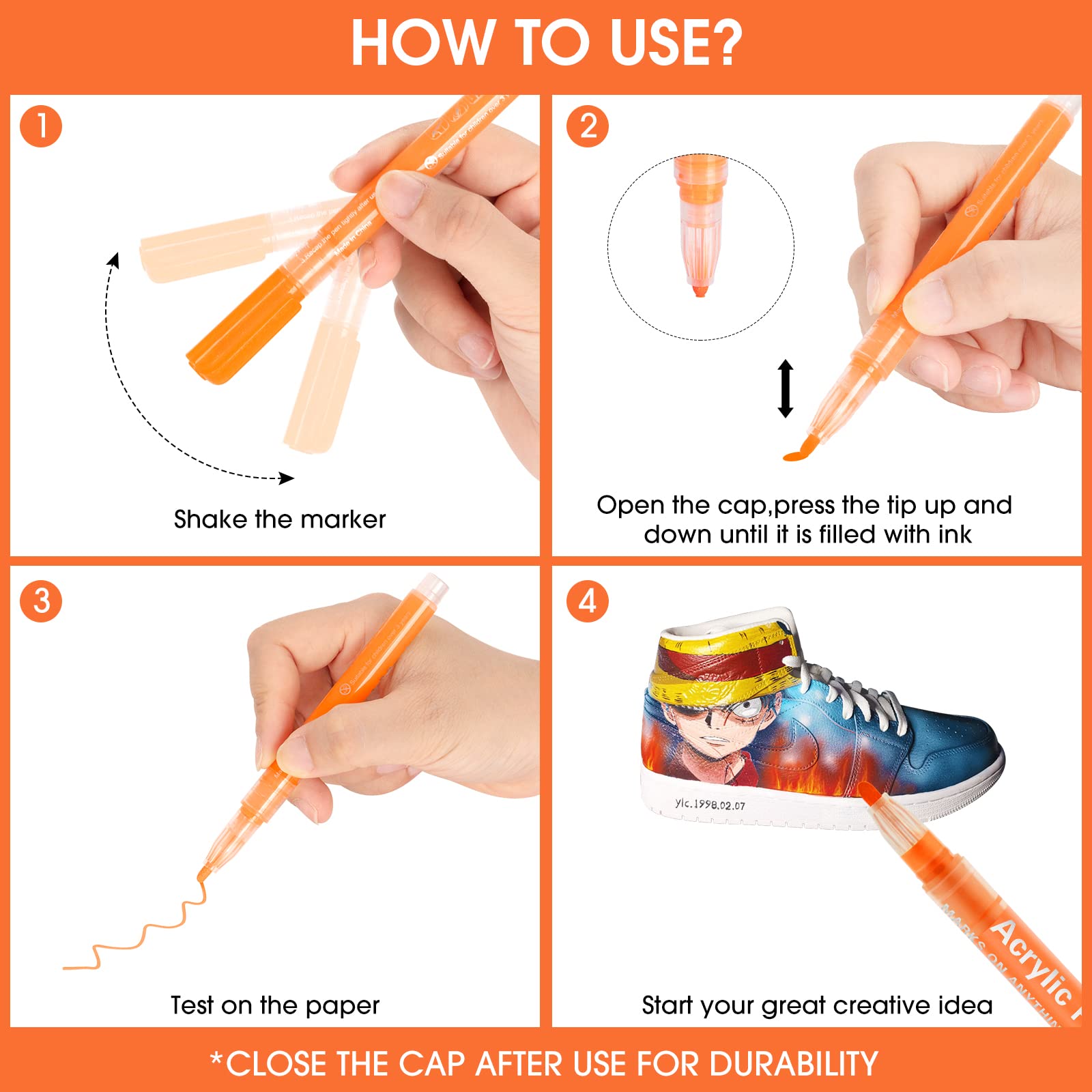 Droaful Acrylstifte für Steine Wasserfest-12 Pc Acrylstifte für Holz, Felsmalerei, Stein, Keramik, Glas,Stoff, Leinwand, Porzellan, Metall, Wasserbasis Schnell Trocknend Ungiftig und Geruchlos