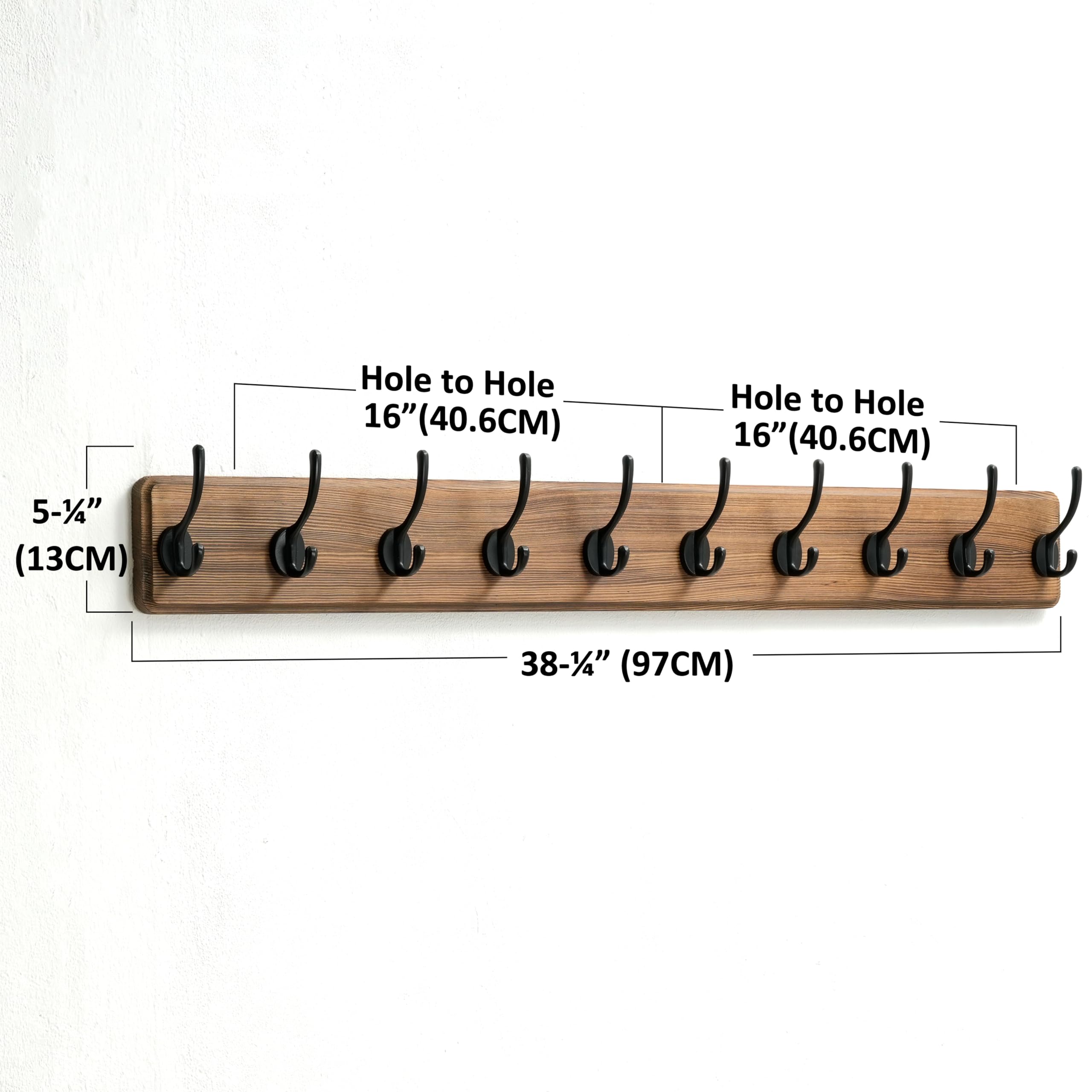 Dseap Garderobe, 97cm Lang Robust Hakenleiste Garderobenleiste Holz mit 10 Haken, Garderobenhaken Wand, Kleiderhaken für Mantel Kleidung Hut Jacken Schals,Natur