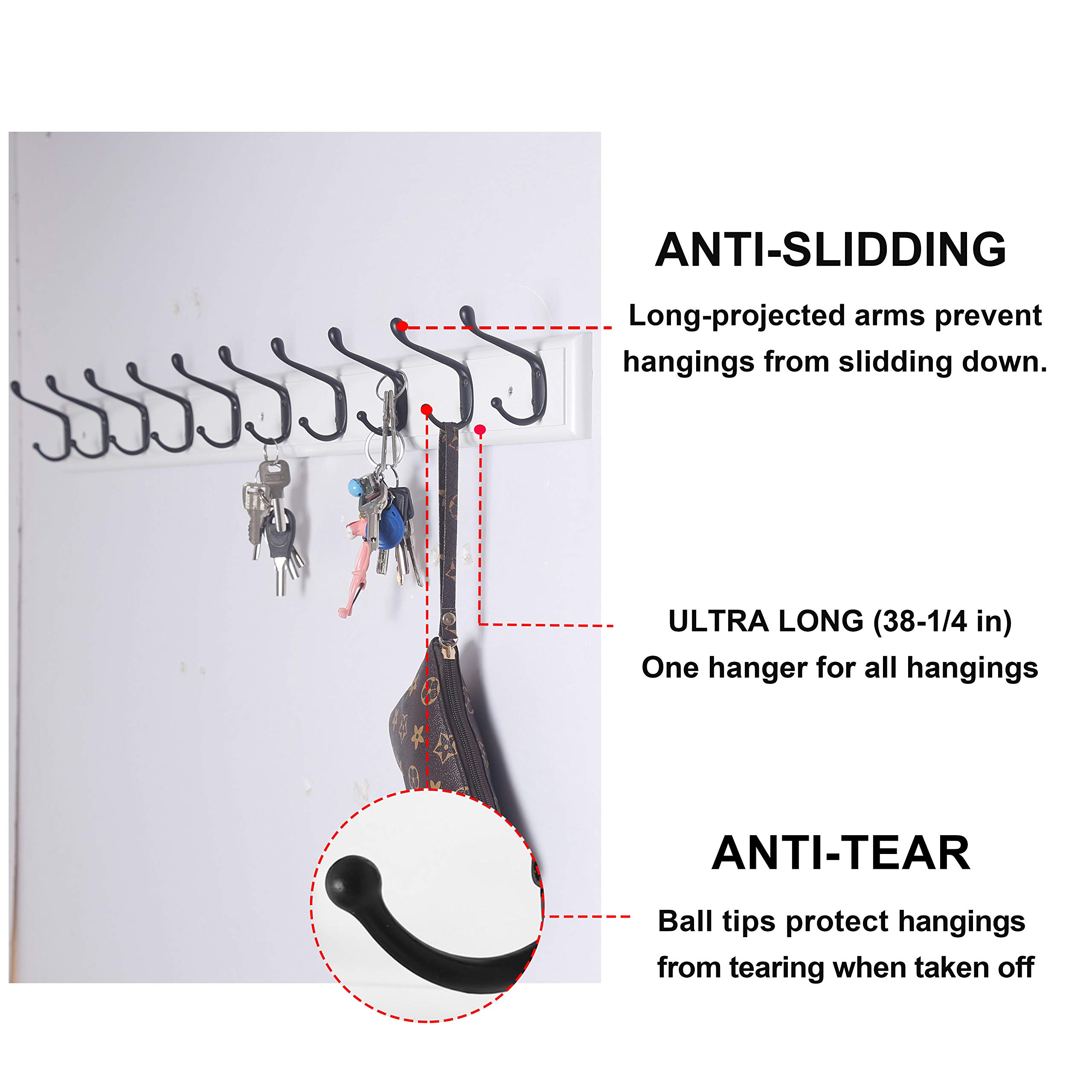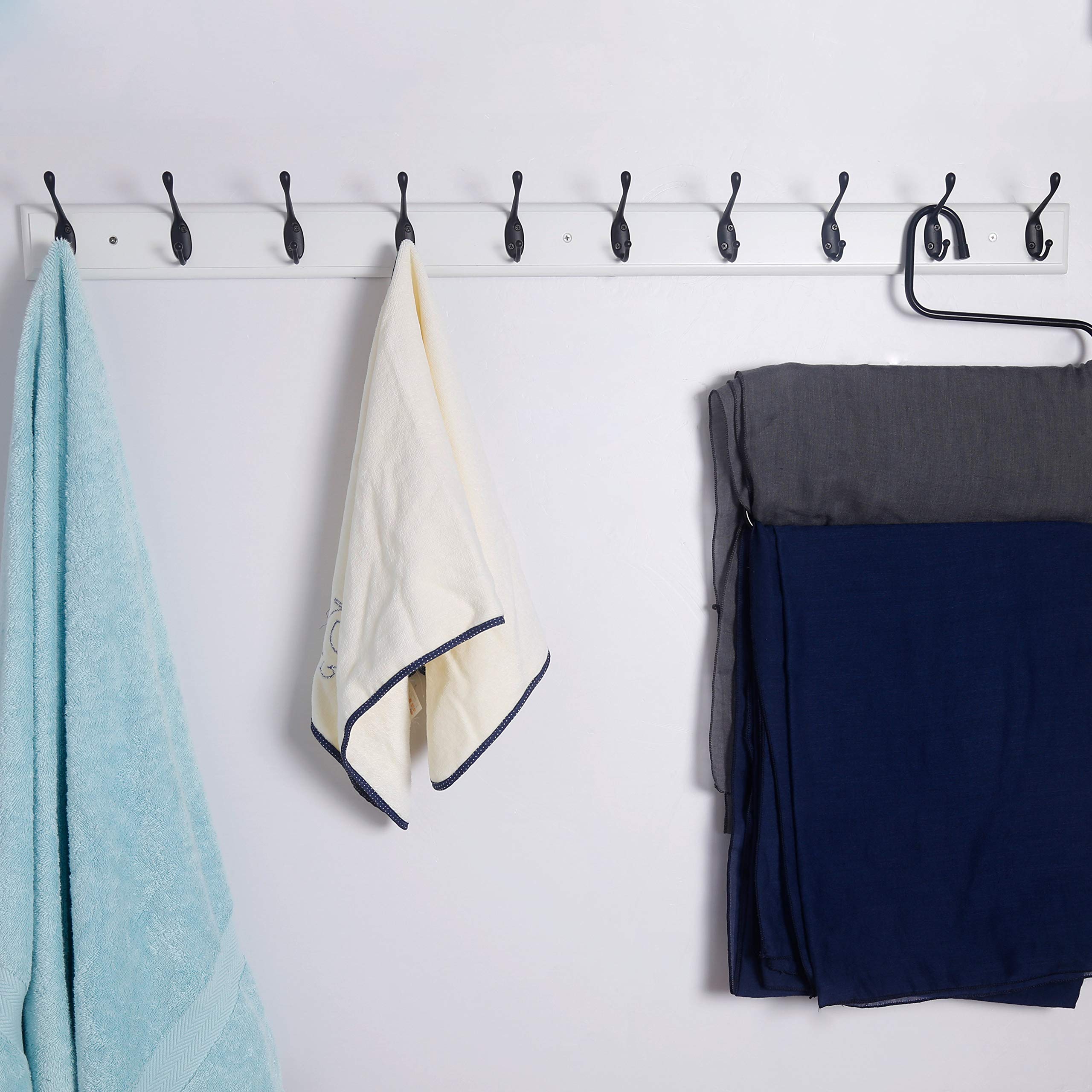 Dseap Garderobenleiste: 97cm lang schwerlas hakenleiste mit 10 doppelhaken, kleiderhaken wand, wandgarderobe, garderobenhaken für mantel hut handtuch handtasche, bambus, weiss