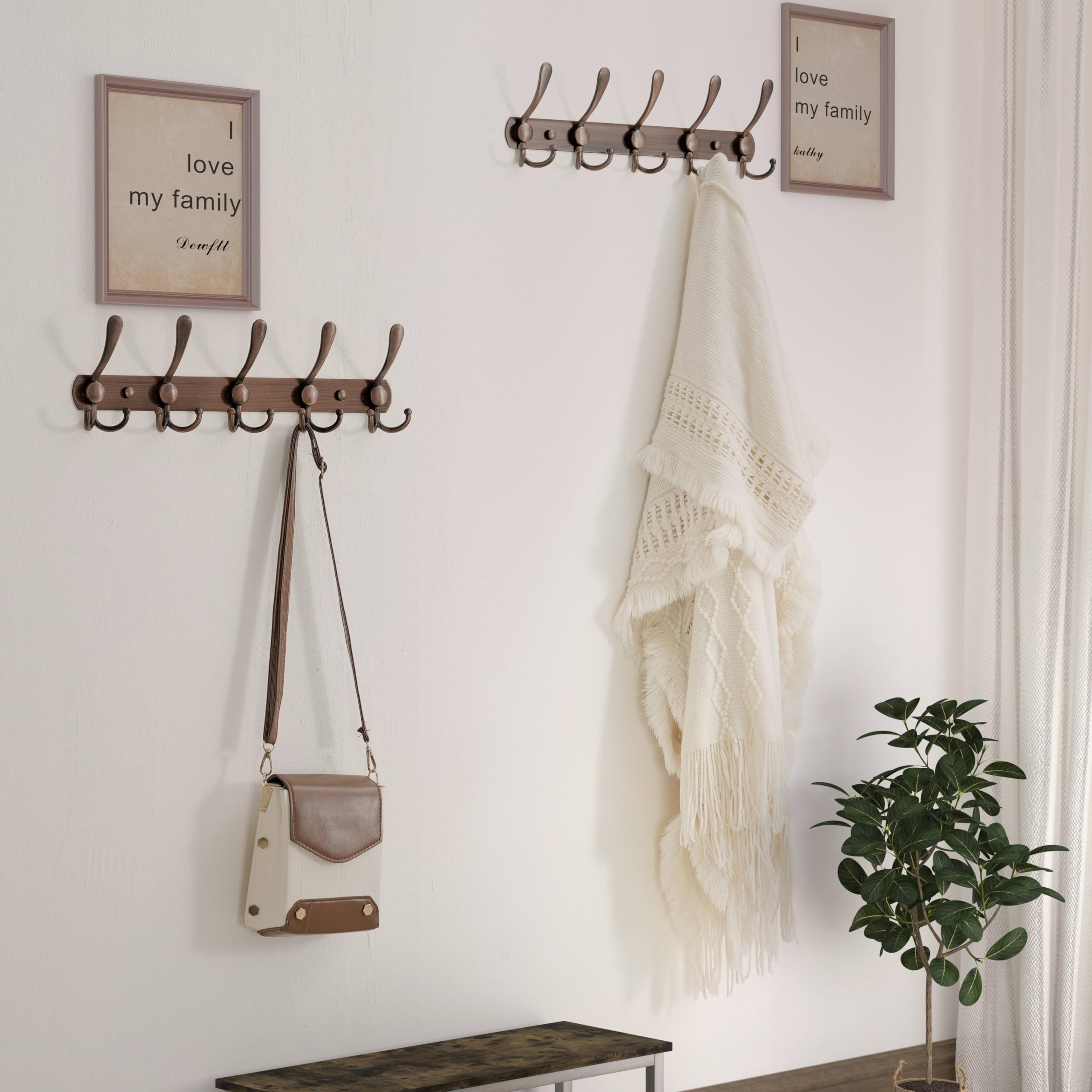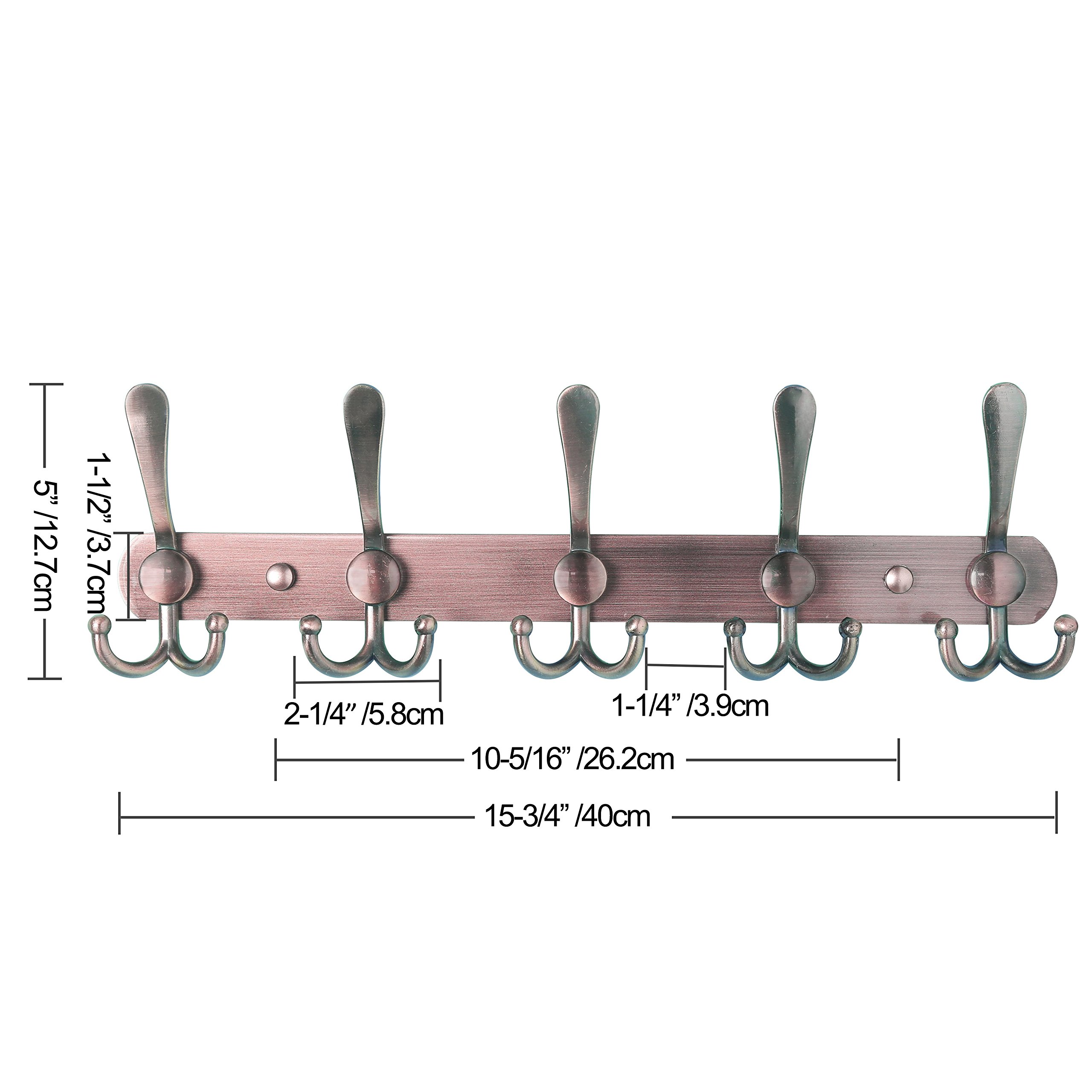 Dseap Garderobenleiste - Schwerlast Garderobenhaken Mit 5 Dreifachhaken, Edelstahl Wandgarderobe, Kleiderhaken Wand, Hakenleiste Garderobe für Mantel Hut Handtuch Handtasche, Antikes Kupfer, 2 Stück