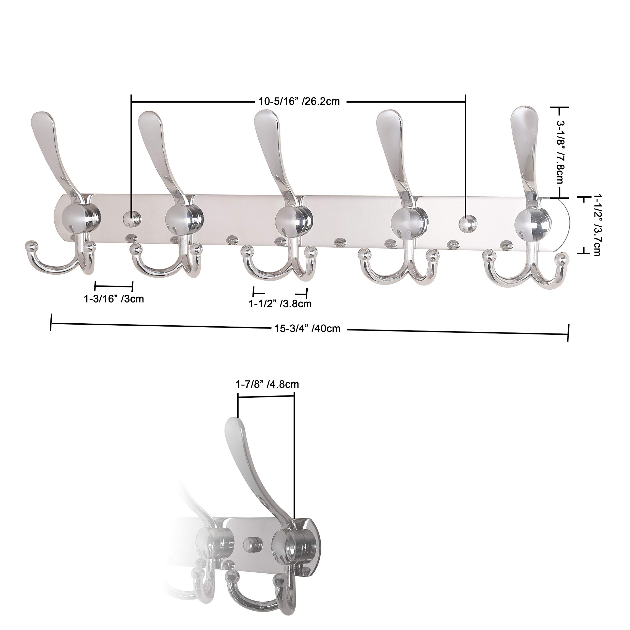 Dseap Garderobenleiste - Schwerlast Garderobenhaken Mit 5 Dreifachhaken, Edelstahl Wandgarderobe, Kleiderhaken Wand, Hakenleiste Garderobe für Mantel Hut Handtuch Handtasche, Verchromt, 2 Stück