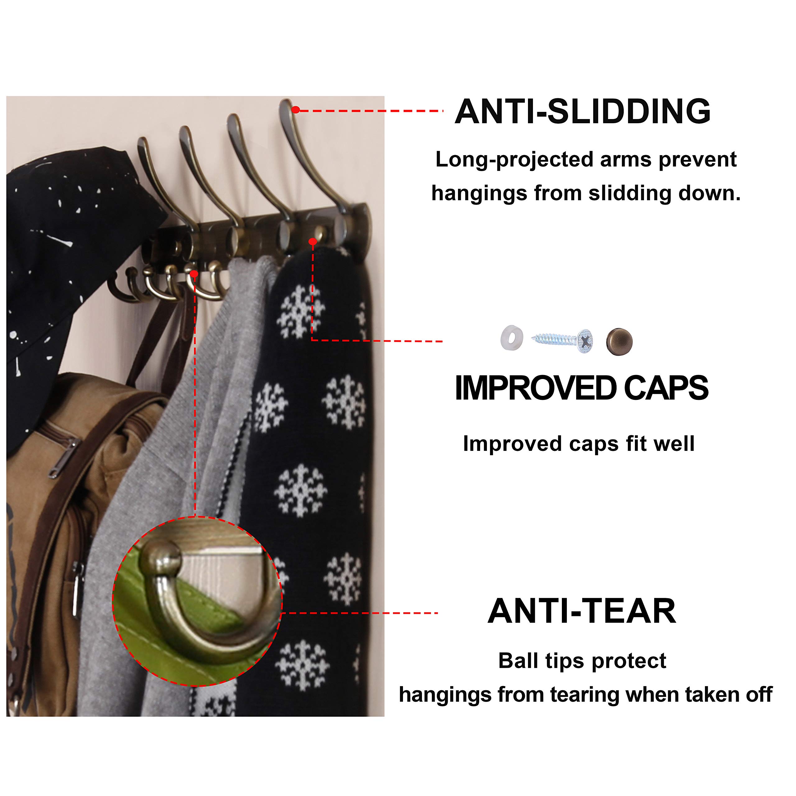 Dseap Heavy-Duty Vintage 5-Triple-Prong Coat Hook