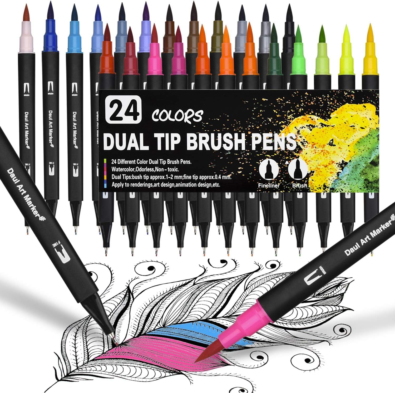 24 Farben Doppel-Filzstifte Set (Dual Tip Marker Pens)