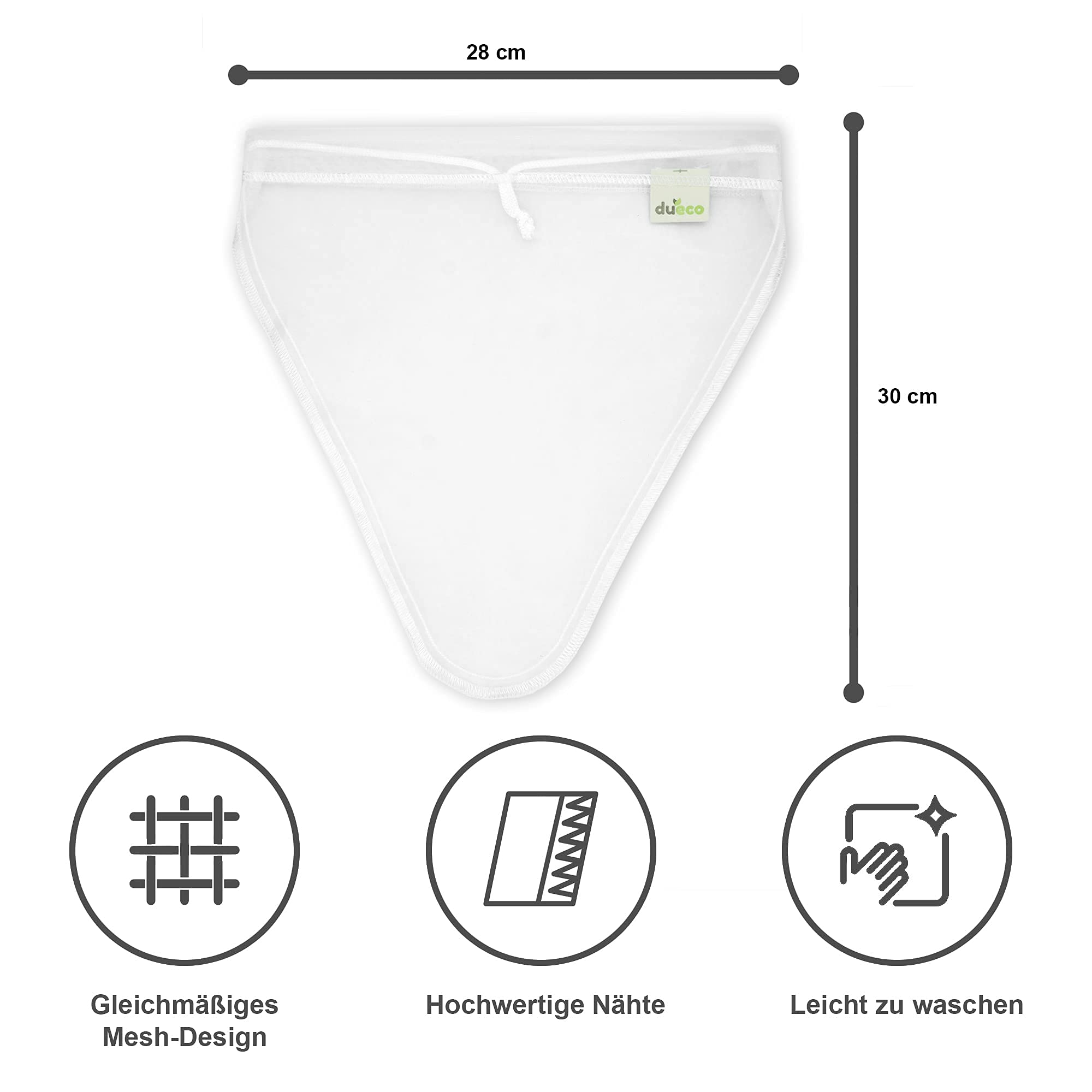 DuEco Nussmilchbeutel mit 2 Stück für Bio Nussmilch & Pflanzenmilch - Mehrzweck Passiertuch für hausgemachten Käse, Obstsaft und Gemüsesaft (2er Set | V-förmige Beutel (28 x 30cm))