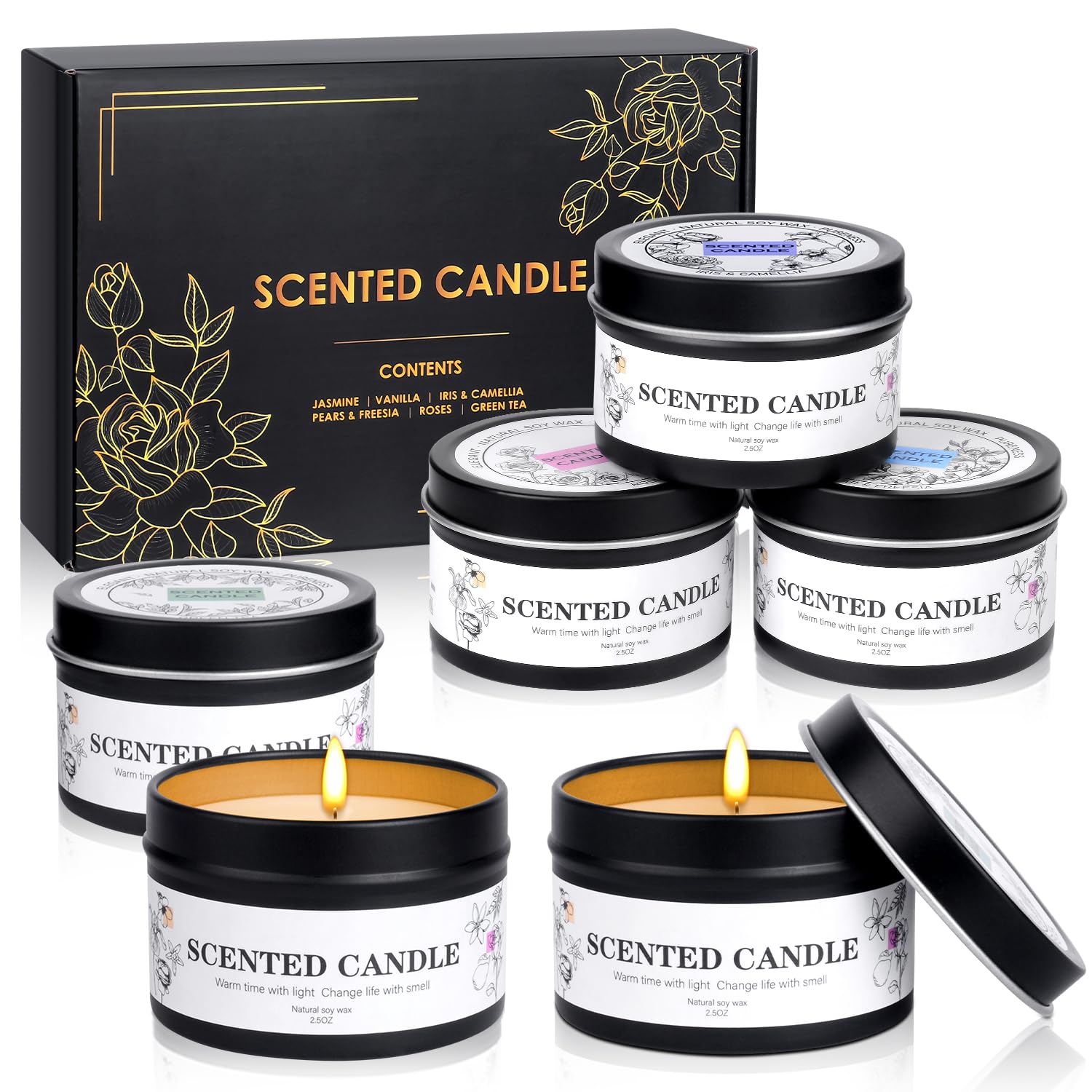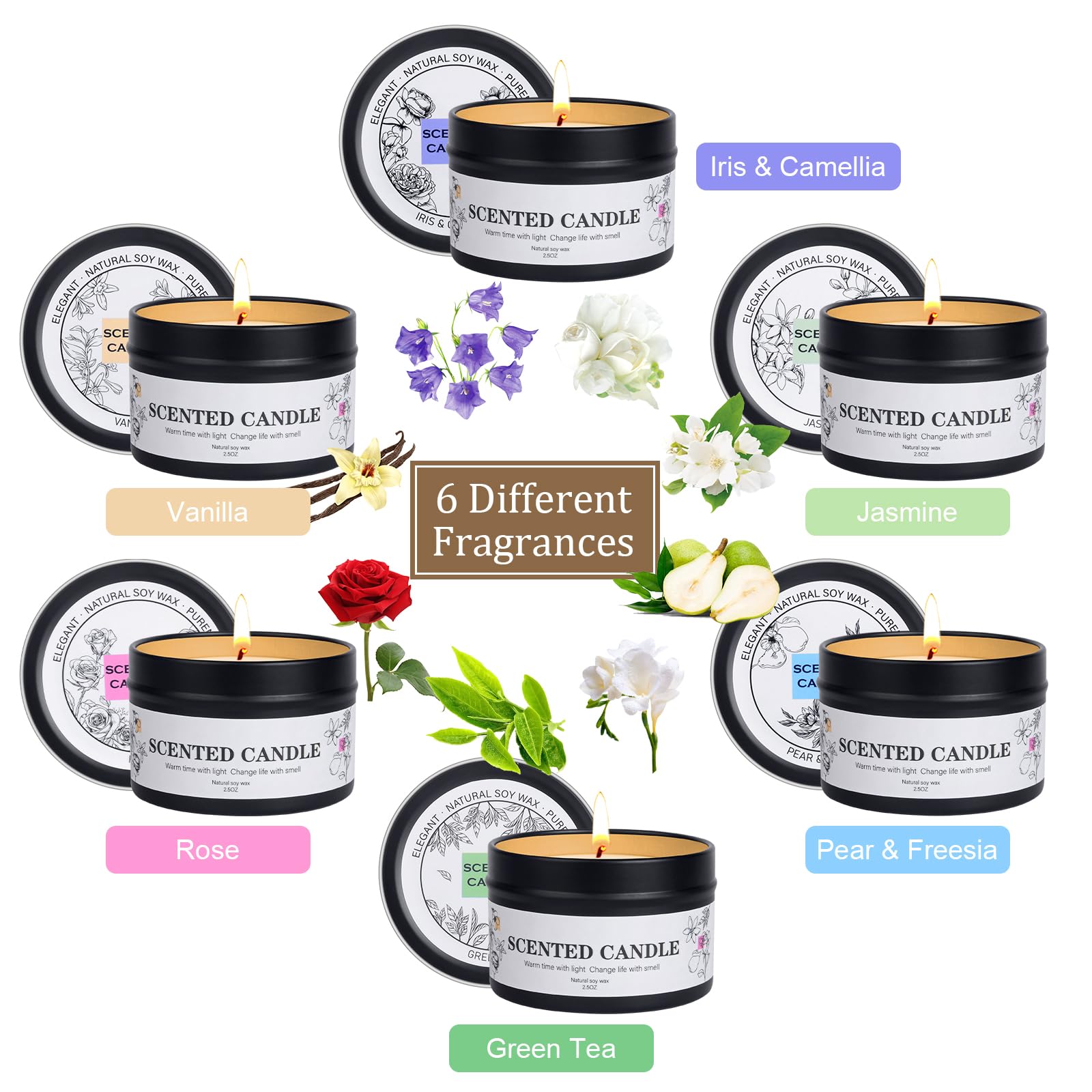 Duftkerzen Geschenkset für Frauen Männer, 6 Stück Duftkerzen im Glas, Natürliches Sojawachs Aromatherapie Duft Candle Set, Kleine Kerzen Geschenke für Weihnachten, Geburtstag, Valentinstag, Muttertag
