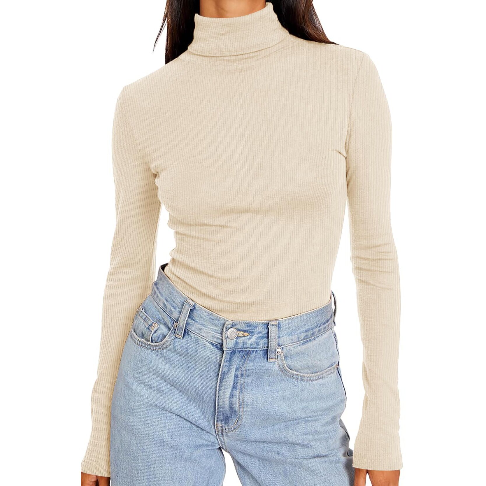 DUOEASE Rollkragenpullover Damen Basic Einfarbig Langarmshirt Damen Herbst Winter Oberteile Rollkragen Langarm Tshirt Elegant Casual Top