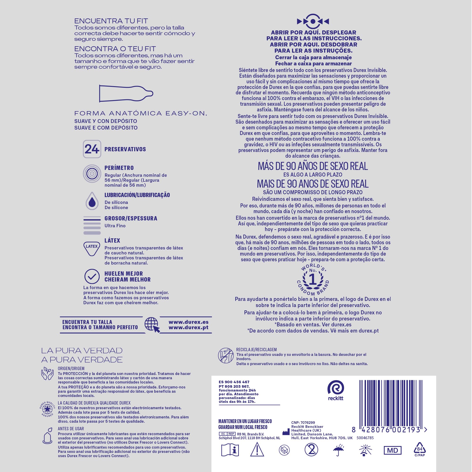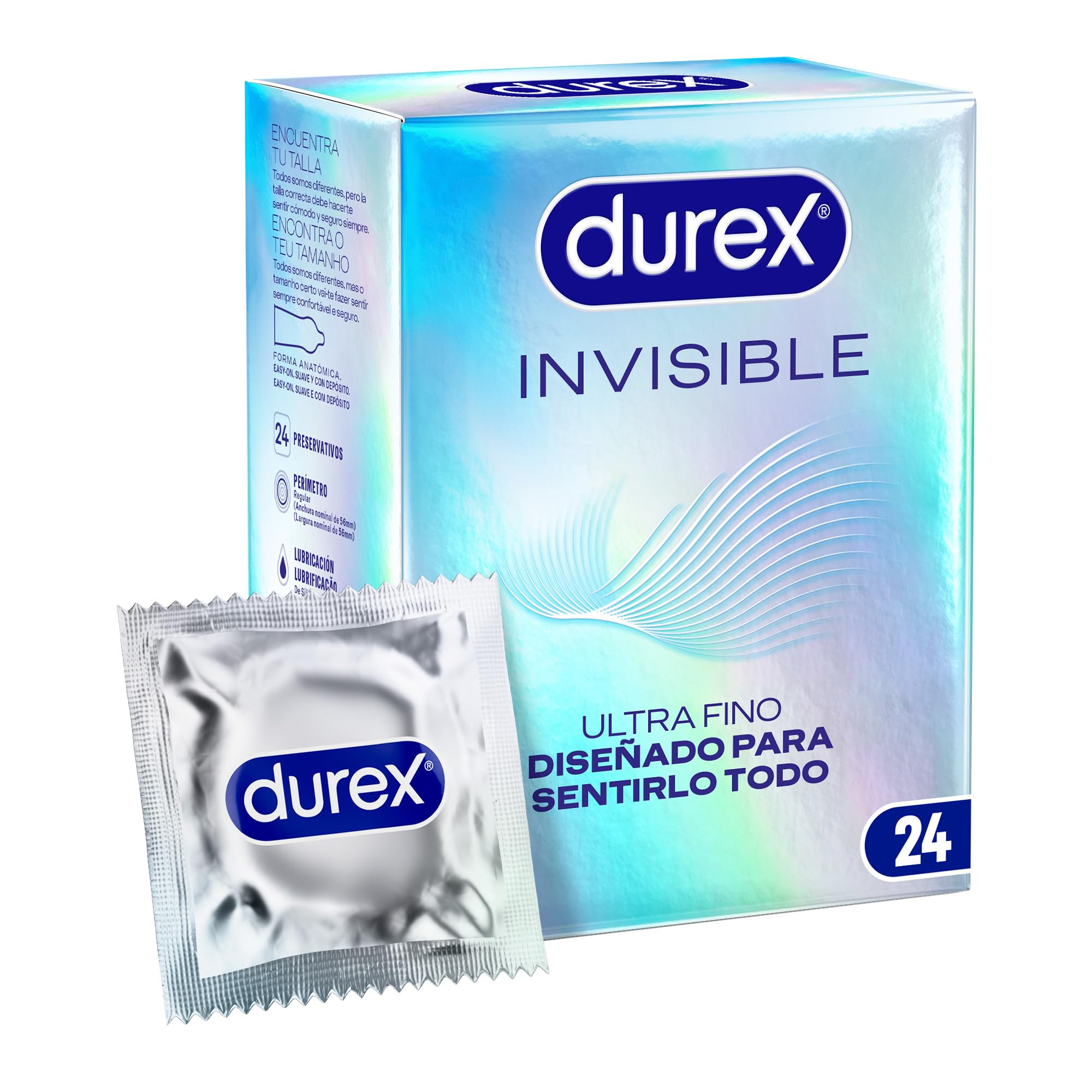 Durex Invisible Kondome, die dünnsten Kondome von Durex*, sind so konzipiert, dass sie super dünn sind und so die Empfindlichkeit maximieren. Trotzdem bieten sie weiterhin ein hohes Mass an Sicherheit und Schutz. Diese Kondome sind transparent, gerade Form und mit Reservoir. Darüber hinaus riechen Durex Kondome besser, um Ihren Sex mit Ihrem Partner zu einem angenehmeren Moment zu machen. Wählen Sie Ihre: Wir sind alle anders, aber das richtige Kondom sollte Sie sich immer wohl und sicher fühlen. Aus diesem Grund hat Durex dein optimales Kondom für dich. Betreten Sie den Store Durex oder Amazon.de/durex, um das gesamte Sortiment zu sehen. Jedes unserer Durex Kondome ist zu 100 % elektronisch getestet und hat 5 Qualitätstests bestanden, sodass Ihre Benutzer das nötige Vertrauen haben, um Sex jedes Mal voll zu geniessen. Ausserdem sind sie dermatologisch getestet. Unsichtbare Durex Produktreihe gegen Rest der Durex Serie aus Naturkautschuklatex in Spanien und Portugal. Vorsichtsmassnahmen: Bitte lesen Sie die Informationen auf der Verpackung, bevor Sie das Kondom verwenden. Dieses Kondom besteht aus Naturkautschuklatex, der bei Latexallergikern allergische Reaktionen hervorrufen kann. Beenden Sie die Anwendung, wenn Sie sich bei der Verwendung unwohl oder gereizt fühlen. Verwenden Sie das Kondom nur einmal. Die Wiederverwendung kann das Risiko von Brüchen und Infektionen erhöhen. Wenn Sie zuerst das Kondom für Oralsex verwenden, sollten Sie ein neues Kondom für jede andere Art von Sexualpraxis verwenden. Verwenden Sie nur Gleitmittel, die für die Verwendung mit Kondomen empfohlen werden. Für Analsex verwenden Sie zusätzliche Gleitmittel auf der Aussenseite des Kondoms (nicht Durex Frescor oder Lovers Connect für diesen Zweck verwenden). Denken Sie daran, dass keine Verhütungsmethode zu 100 % gegen Schwangerschaft, HIV oder sexuell übertragbare Infektionen wirkt. Ausserhalb der Reichweite von Kindern aufbewahren. RB-M-25096