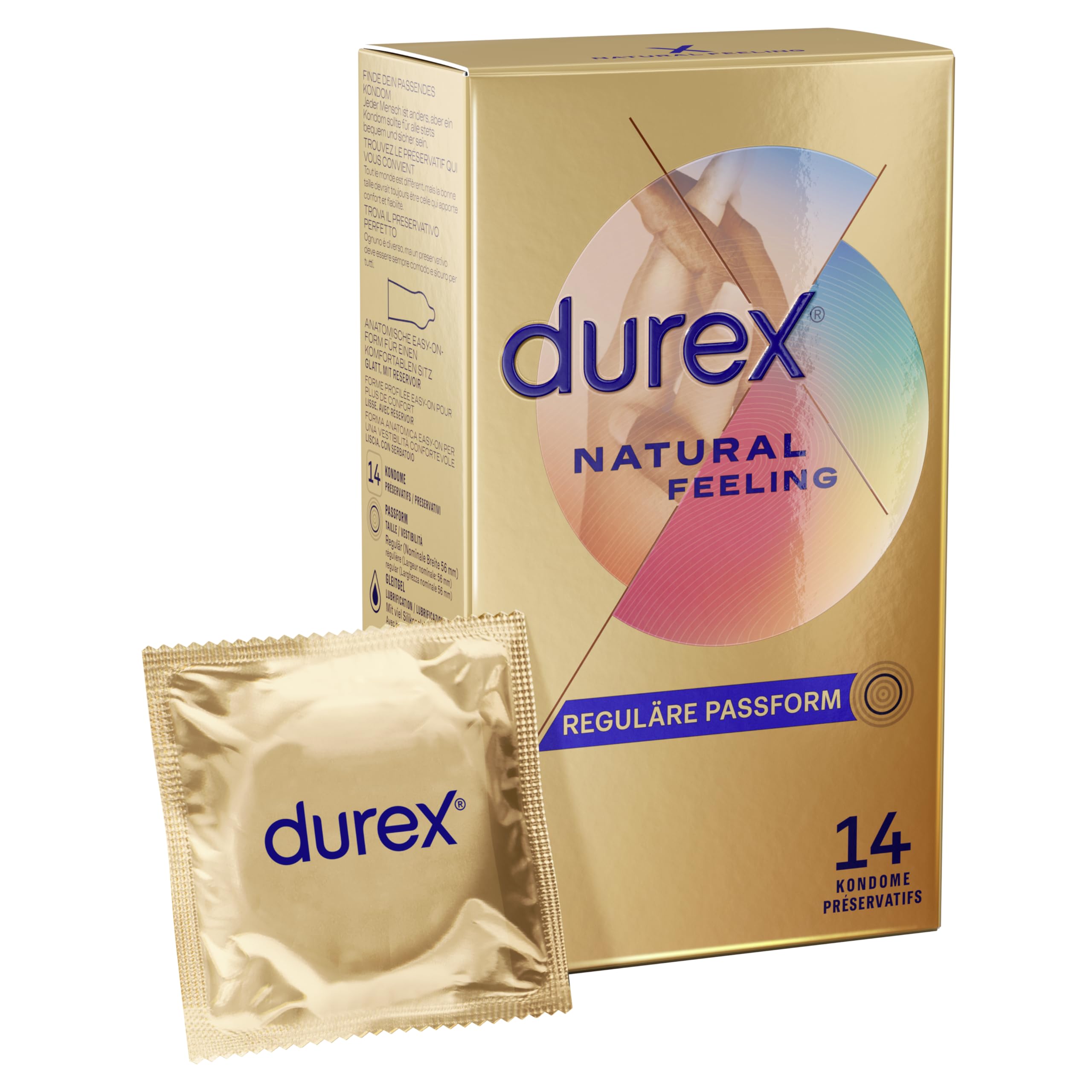 Durex Natural Feeling Kondome – Latexfreie Kondome aus Real-Feel-Material & mit anatomischer Easy-On-Form – 14er Pack (1 x 14 Stück)