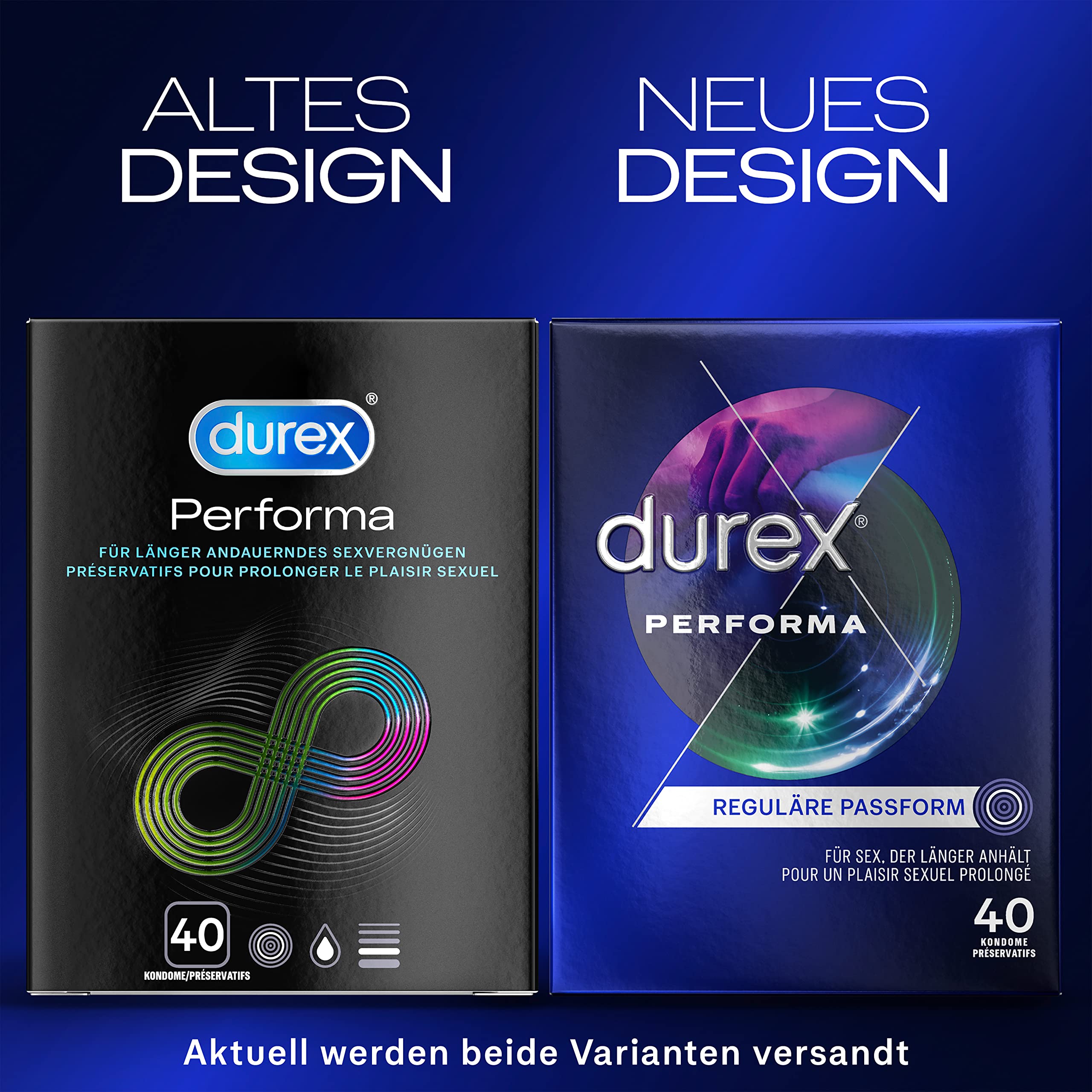 Durex Performa KondomeMit 5 % benzocainhaltigem Gel in der Kondomspitze helfen Durex Performa Kondome, den Höhepunkt hinauszuzögern und die Erregungsphase zu verlängern – für Sex, der länger anhält. Dank der Easy-On-Form sitzt das Kondom komfortabel, während die neue Formel für einen angenehmen Geruch sorgt. Die Kondome sind mit Silikongleitgel befeuchtet.Die richtige Kondomgrösse ist wichtig: Ein zu grosses Kondom kann abrutschen, ein zu Kleines kann platzen. Durex Performa Kondome haben eine reguläre Grösse mit 56 mm nominaler Breite.Durex Kondome durchlaufen 5 Qualitätstests. Zudem wird jedes einzelne Kondom zu 100 % elektronisch geprüft. Denke daran, dass keine Verhütungsmethode zu 100 % vor Schwangerschaft, HIV oder sexuell übertragbaren Krankheiten schützt.Mit 5 % benzocainhaltigem Gel in der KondomspitzeMaterial: NaturkautschuklatexNominale Breite: 56 mm (reguläre Passform)Transparent und mit Silikongleitgel befeuchtetMit glatter Easy-On-Form und Reservoir