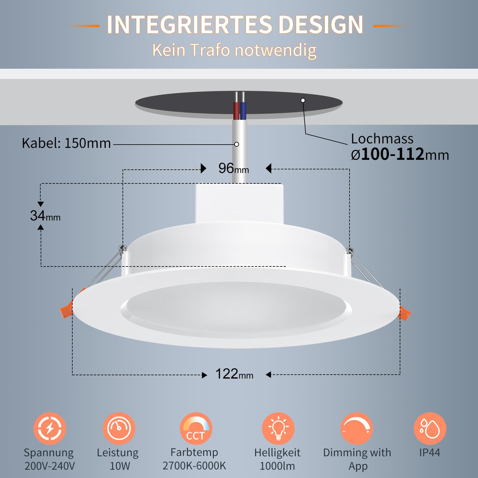 Einbaudurchmesser: 100-112mm