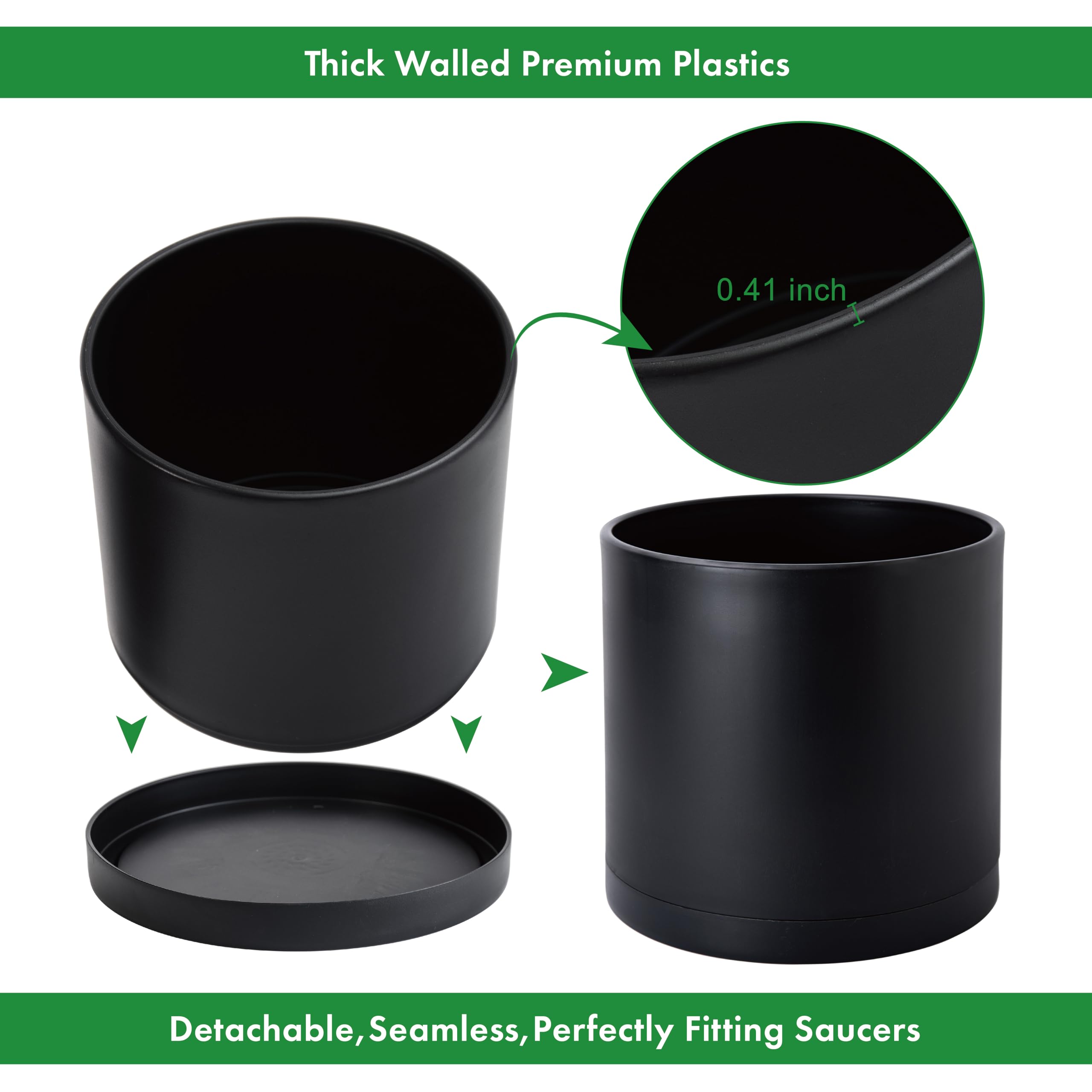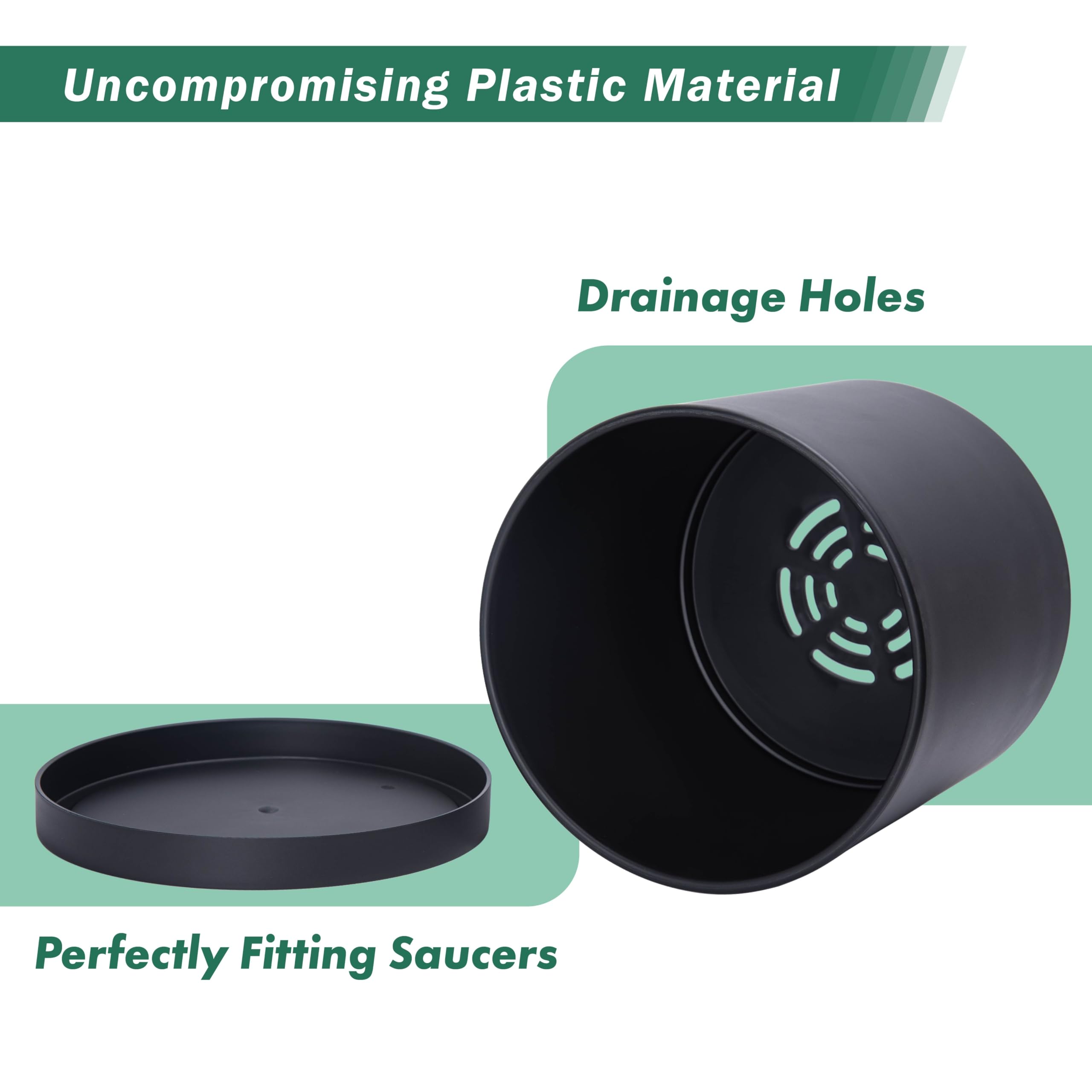 D'vine Dev 74-X-B-4 Pflanztöpfe aus schwarzem Kunststoff für Blumentopf mit Drainageloch und nahtlosen Untersetzern, 35,6 cm, Schwarz