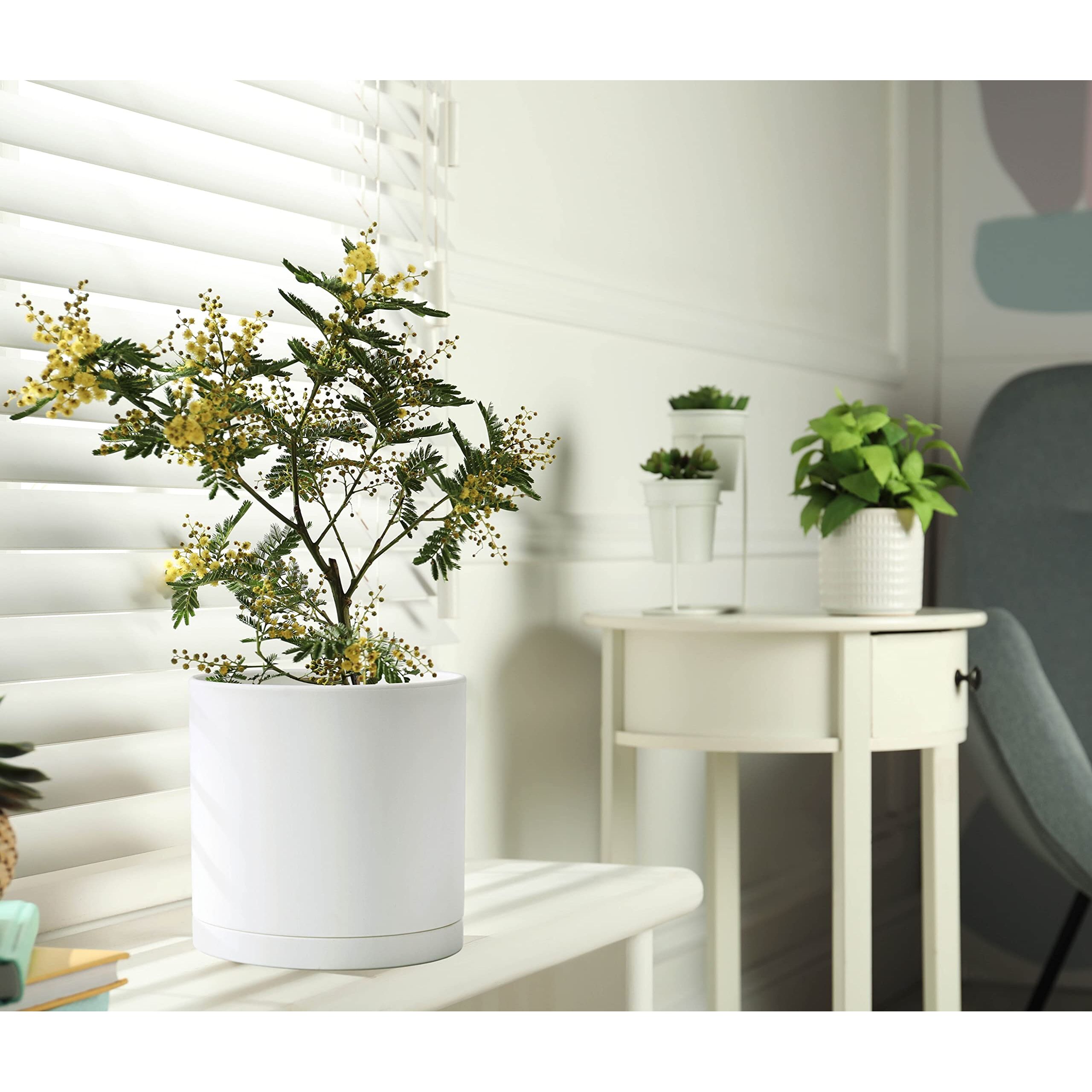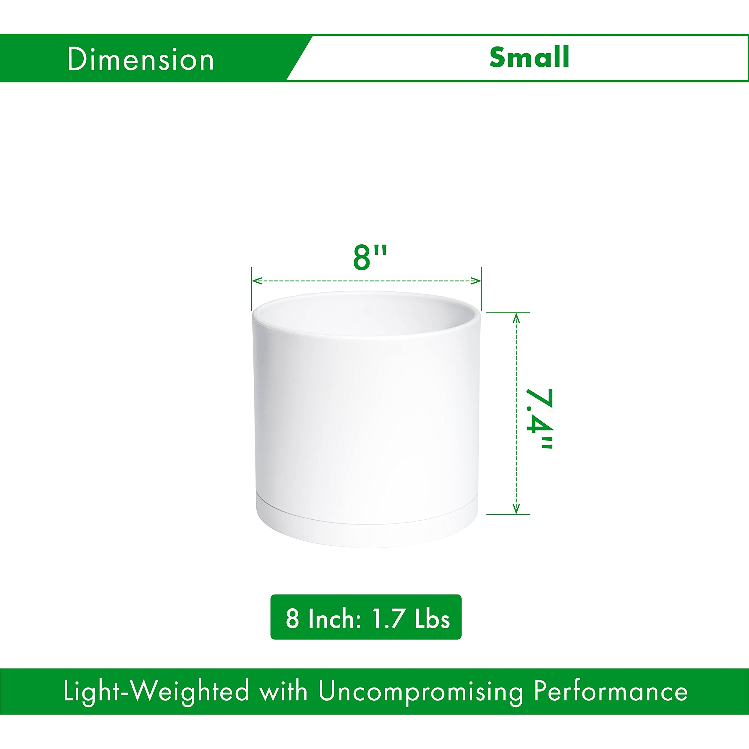 D'vine Dev Kunststoff-Pflanztöpfe für Blumentöpfe mit Ablaufloch und nahtlosen Untersetzern, Weiss, 74-X-A-1, 20,3 cm