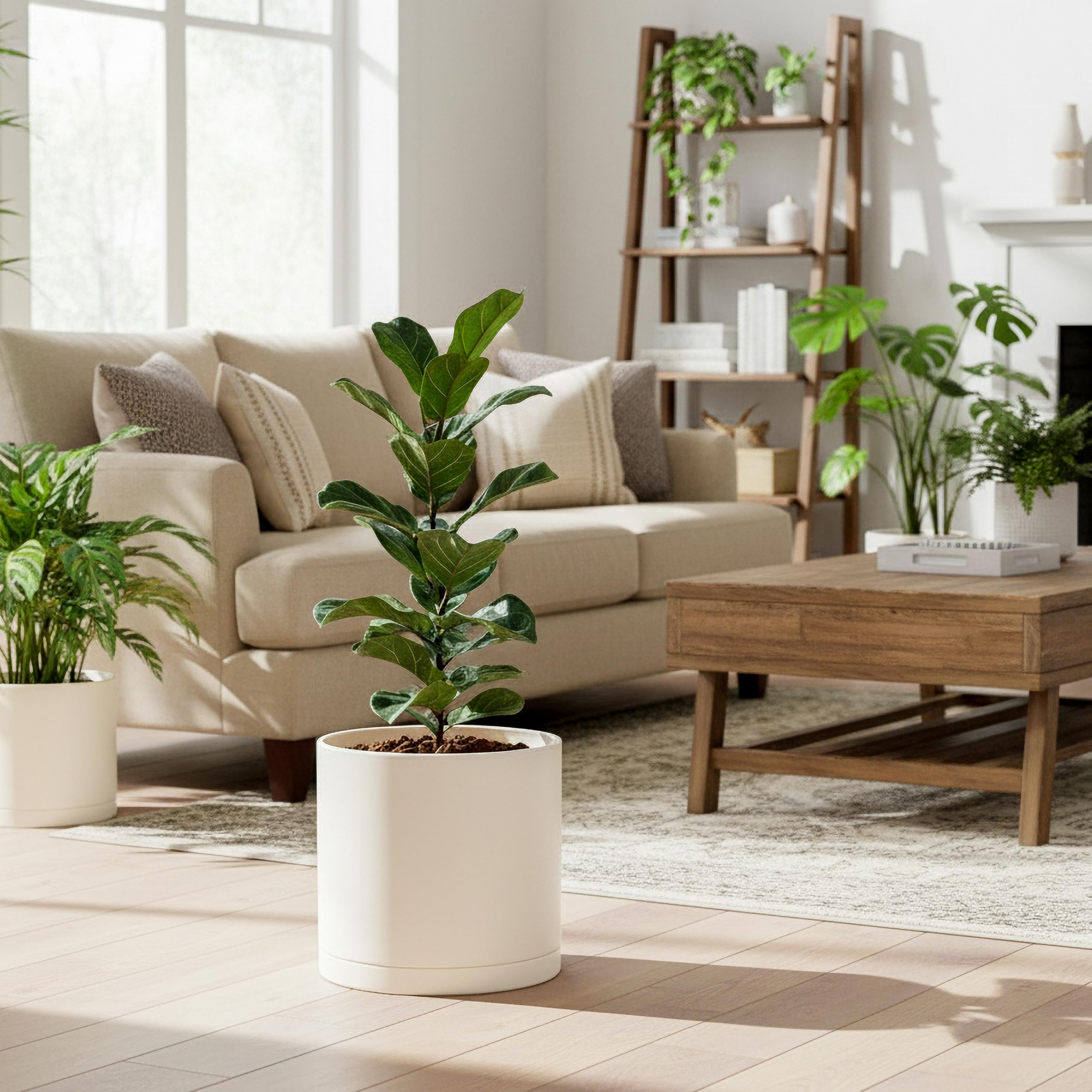 D'vine Dev 25,4 cm Kunststoff-Pflanztöpfe für Blumentopf mit Drainageloch und nahtlosen Untersetzern, Haferflocken, 74-X-H-2