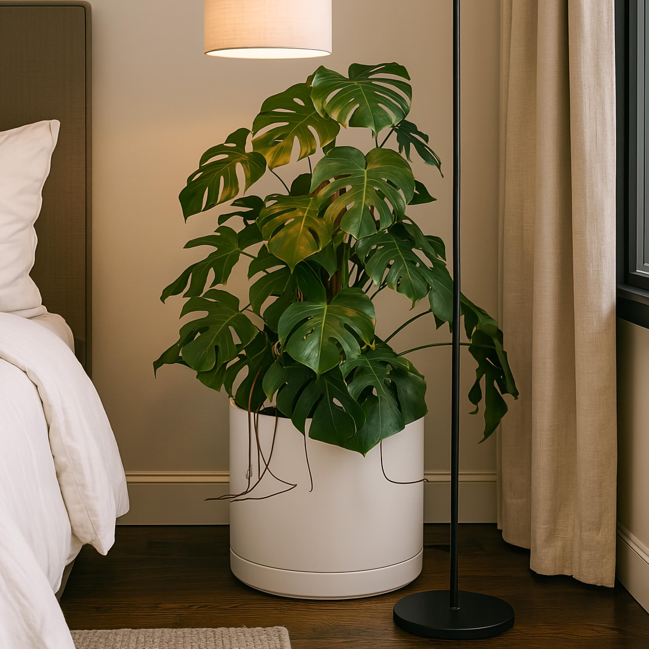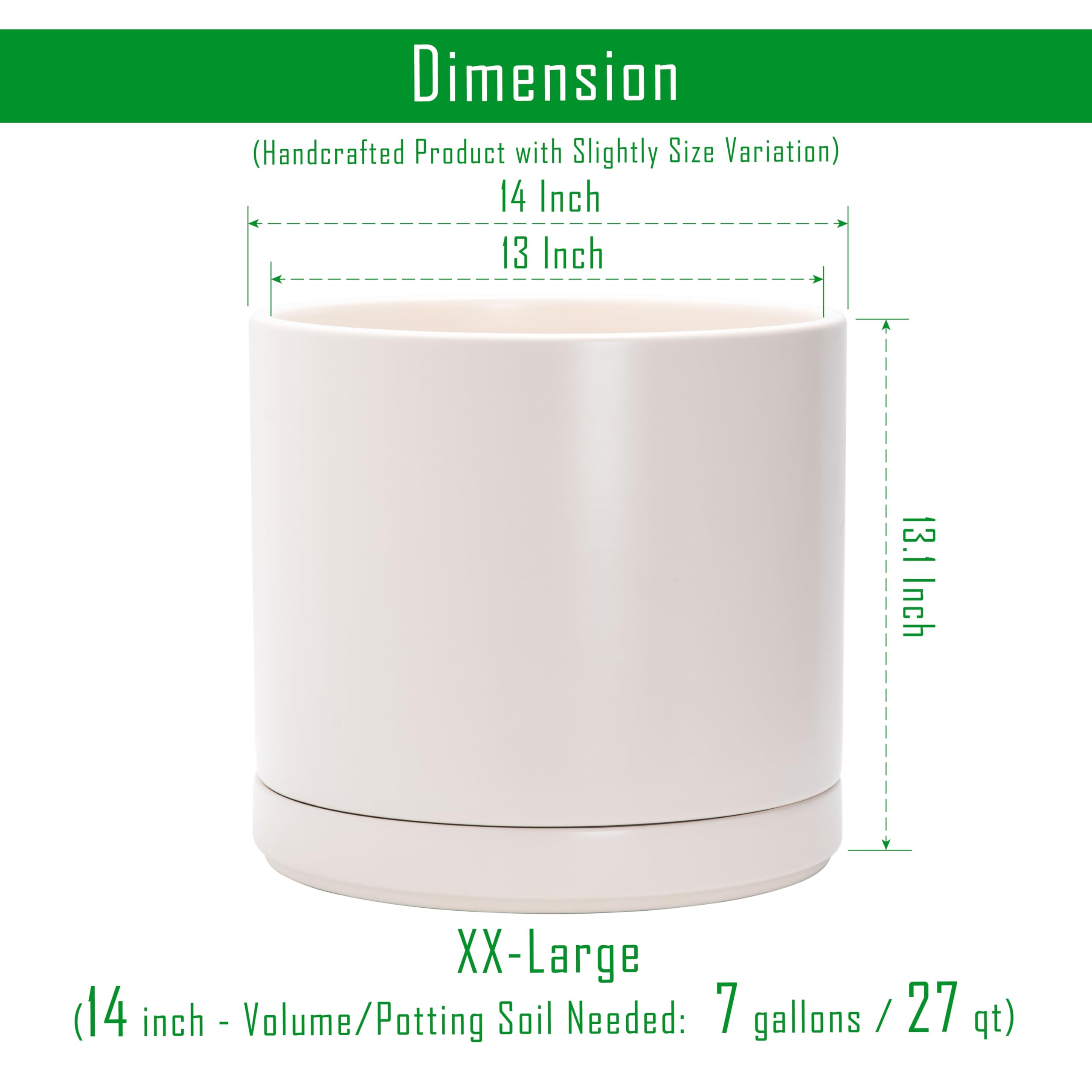 D'vine Dev 94-O-G-8 Keramik-Pflanztopf mit Ablaufloch und Untersetzer, Zylinder, runder Pflanztopf für den Innenbereich, Haferflocken, 35,6 cm