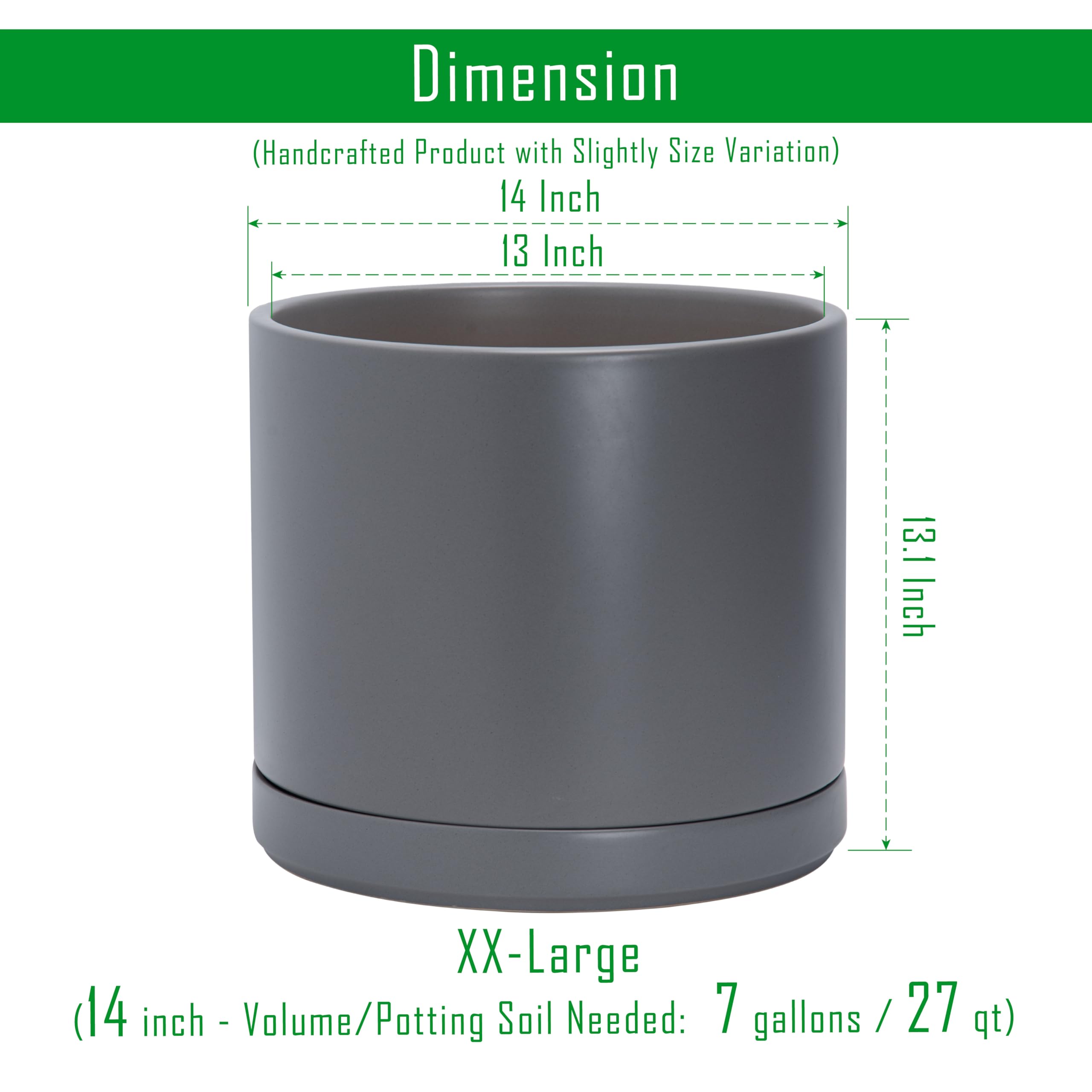 D'vine Dev 35,6 cm Keramik-Pflanztopf mit Ablaufloch und Untersetzer, Zylinder, runder Pflanztopf für den Innenbereich, gesprenkelt, grau, 94-O-G-3