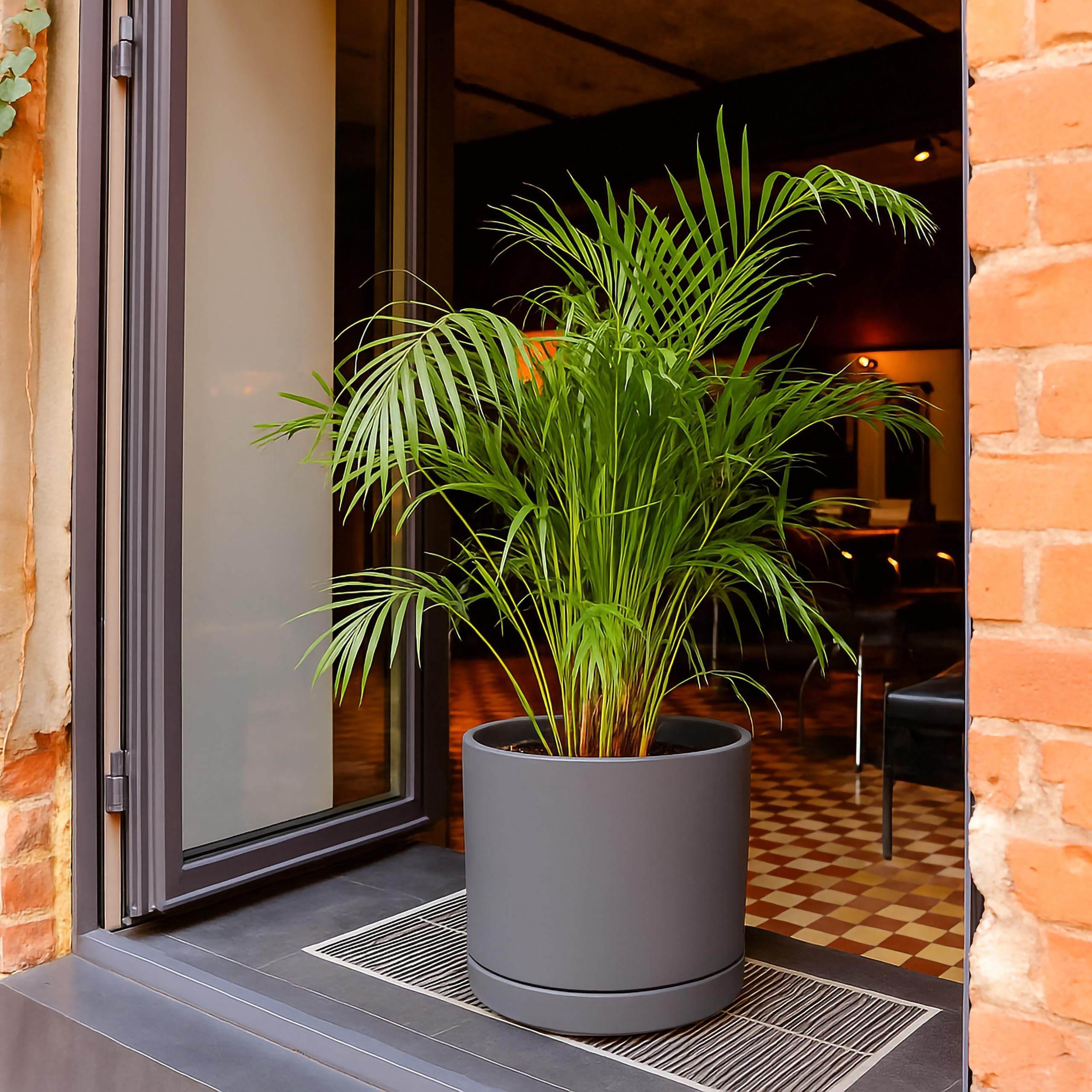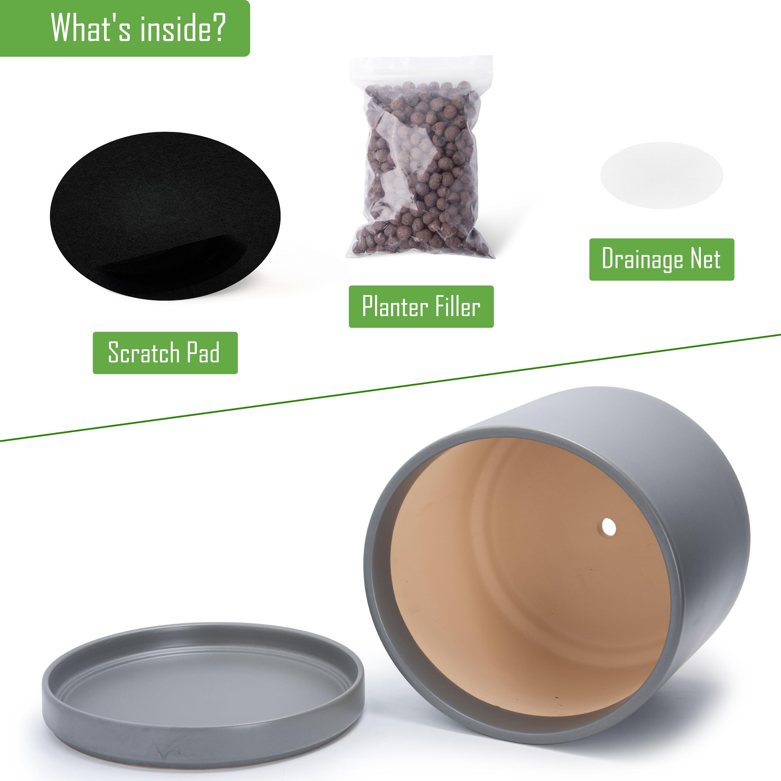 Keramik Pflanztopf mit Drainageloch und Untersetzer, Indoor Zylinder Rund Pflanztopf Zylinder Gerade Rund Modern Topf mit Drainageloch und Passgenauer Untersetzer Erhältlich in Weiss, Schwarz, Grau, Terrakotta, Terrakotta/Weiss, Grau und Schwarz/Braun. Inklusive passendem Untersetzer aus Keramik.