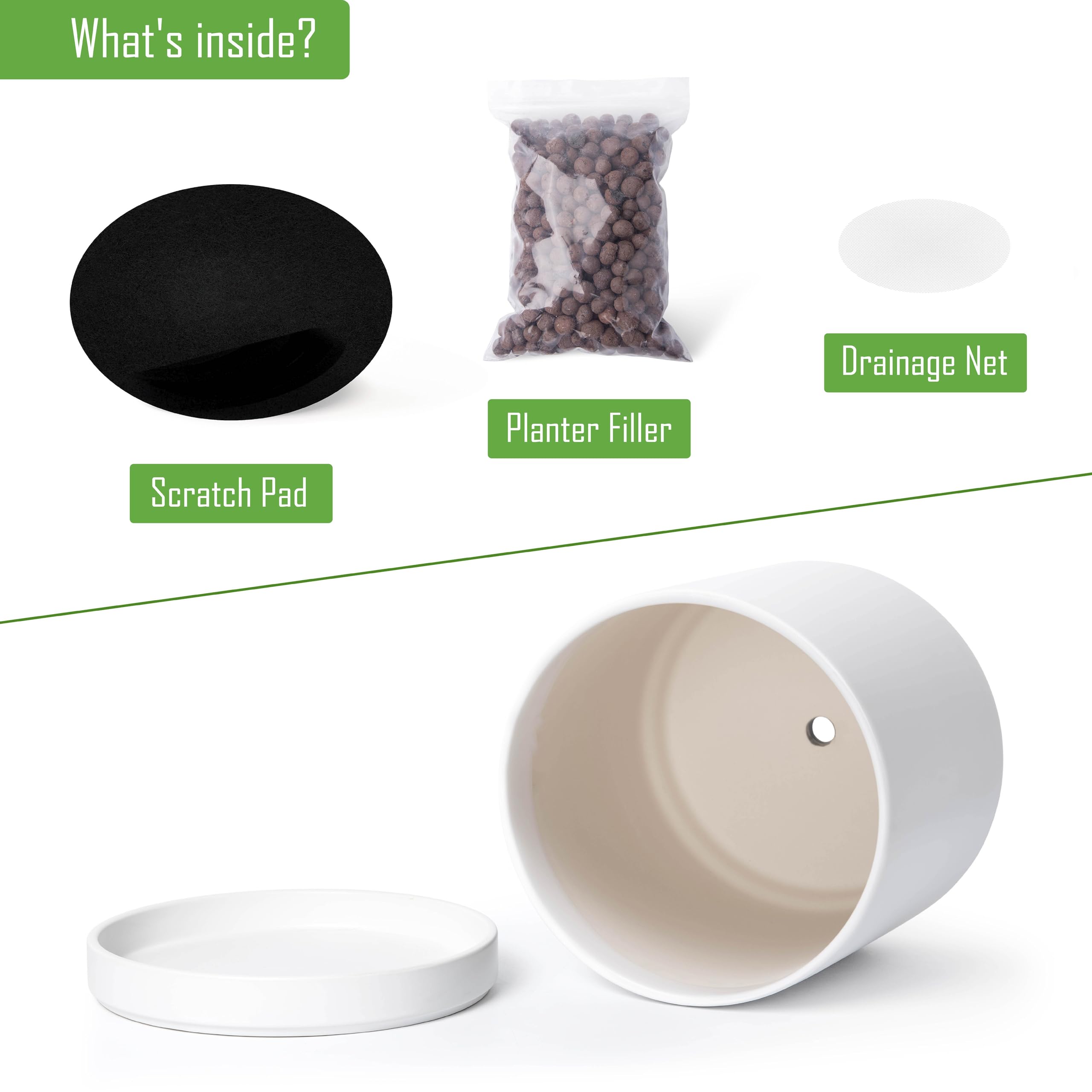 Keramik Pflanztopf mit Drainageloch und Untersetzer, Indoor Zylinder Rund Pflanztopf Zylinder Gerade Rund Modern Topf mit Drainageloch und Passgenauer Untersetzer Erhältlich in Weiss, Schwarz, Grau, Terrakotta, Terrakotta/Weiss, Grau und Schwarz/Braun. Inklusive passendem Untersetzer aus Keramik.