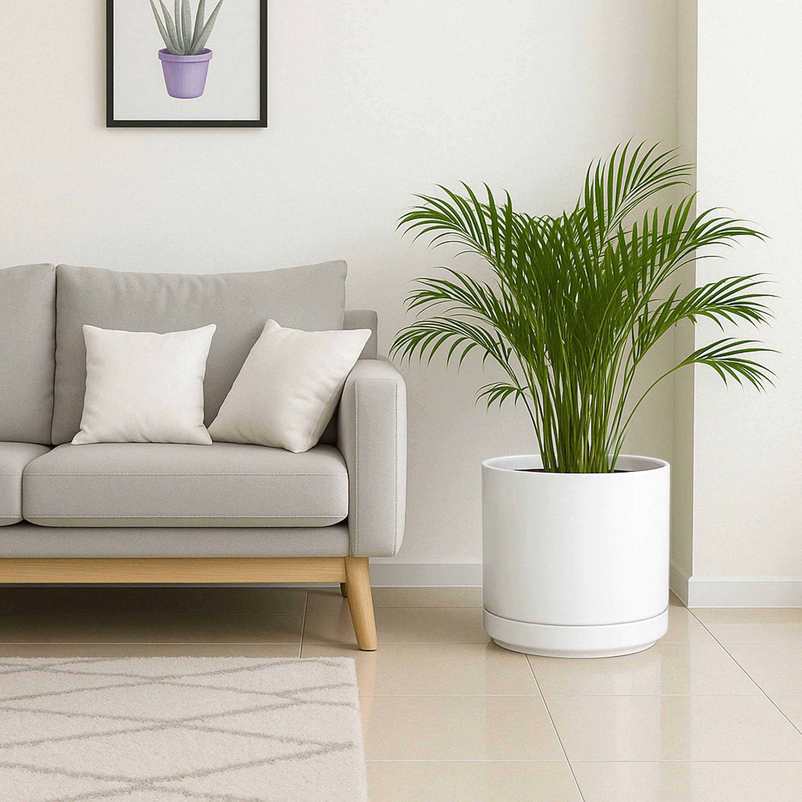 D'vine Dev 94-O-G-1 Keramik-Blumentopf mit Ablaufloch und Untersetzer, zylinderförmig, runder Blumentopf für den Innenbereich, Weiss, 35,6 cm