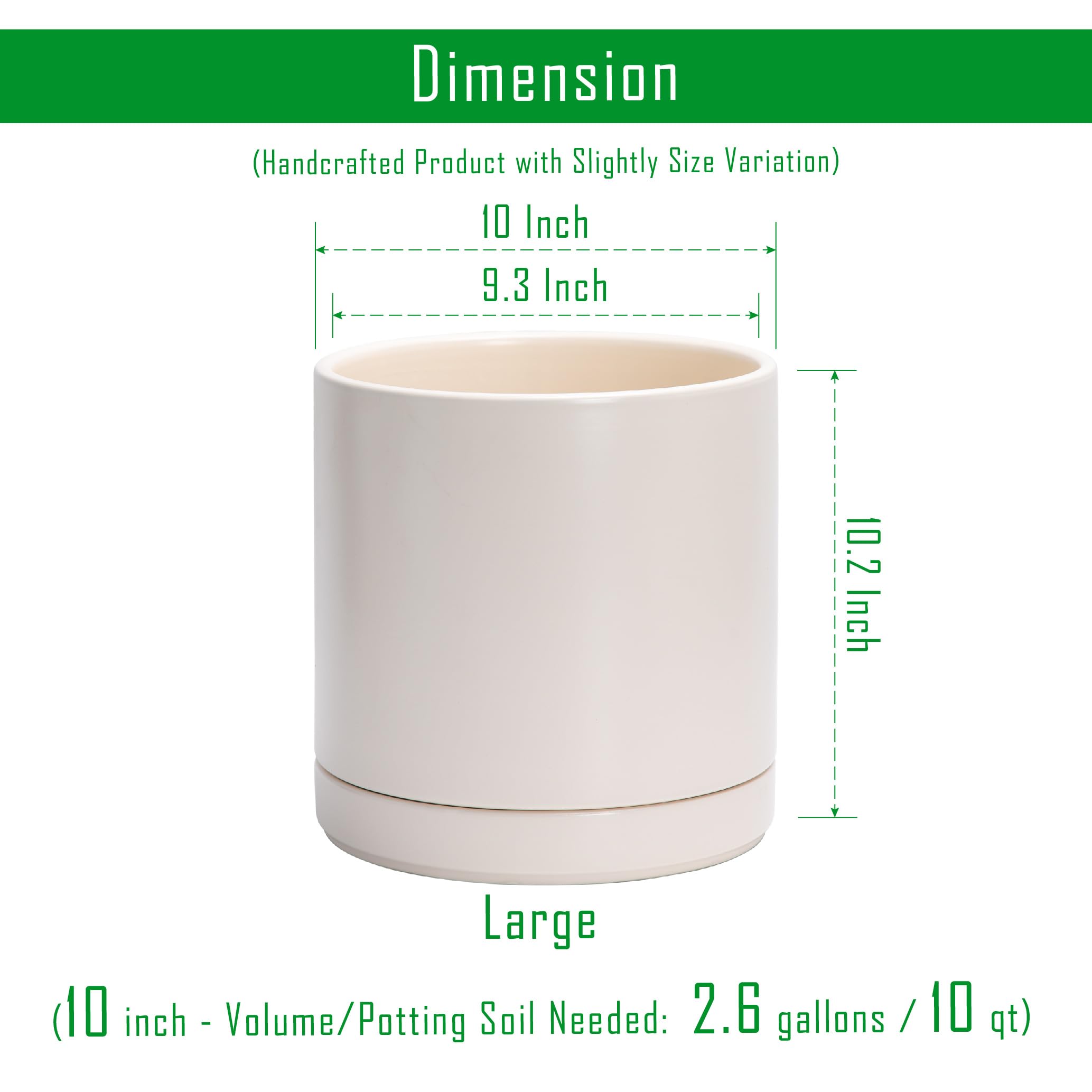 D'vine Dev 94-O-E-8 Keramik-Pflanztopf mit Ablaufloch und Untersetzer, zylinderförmig, rund, für den Innenbereich, Haferflocken, 25,4 cm