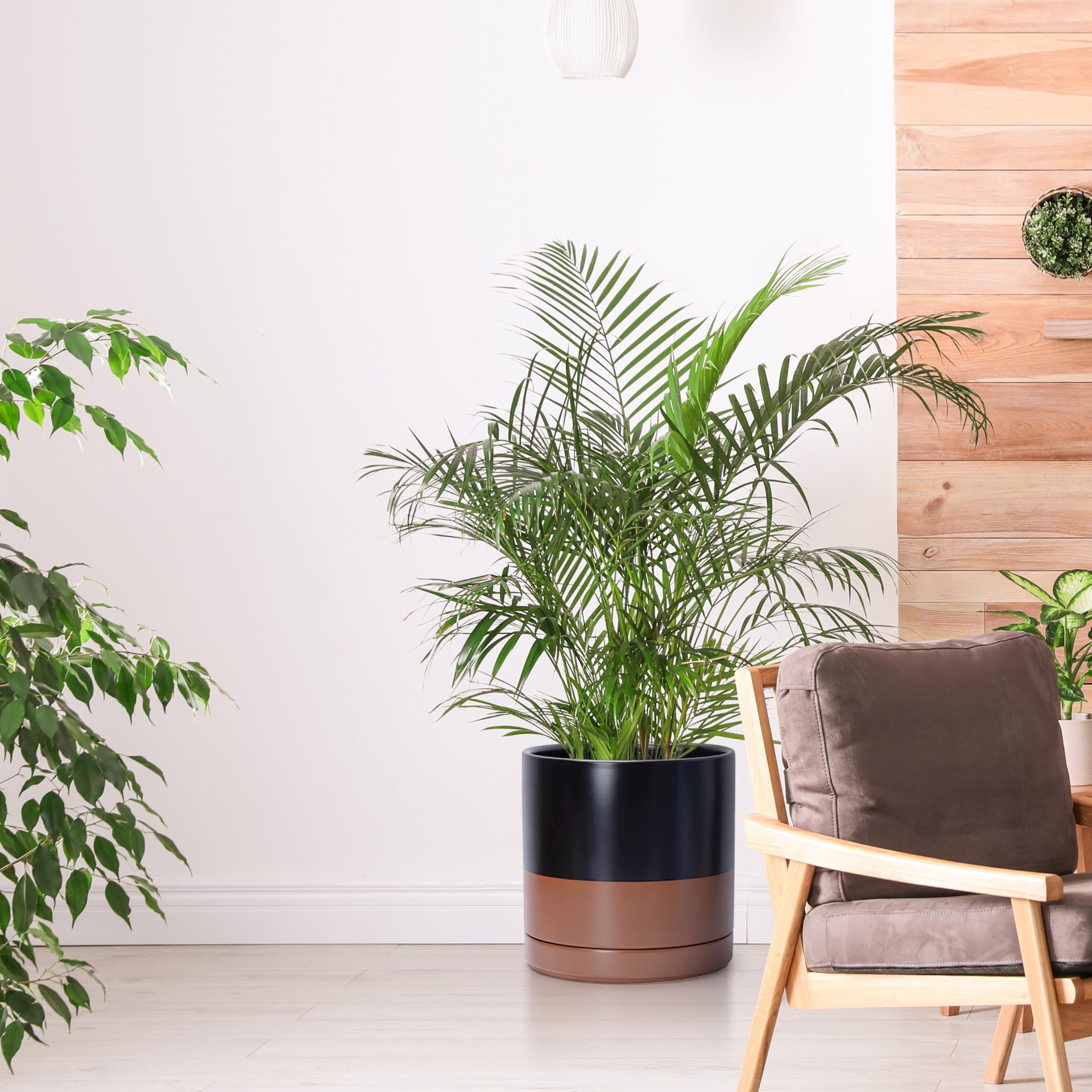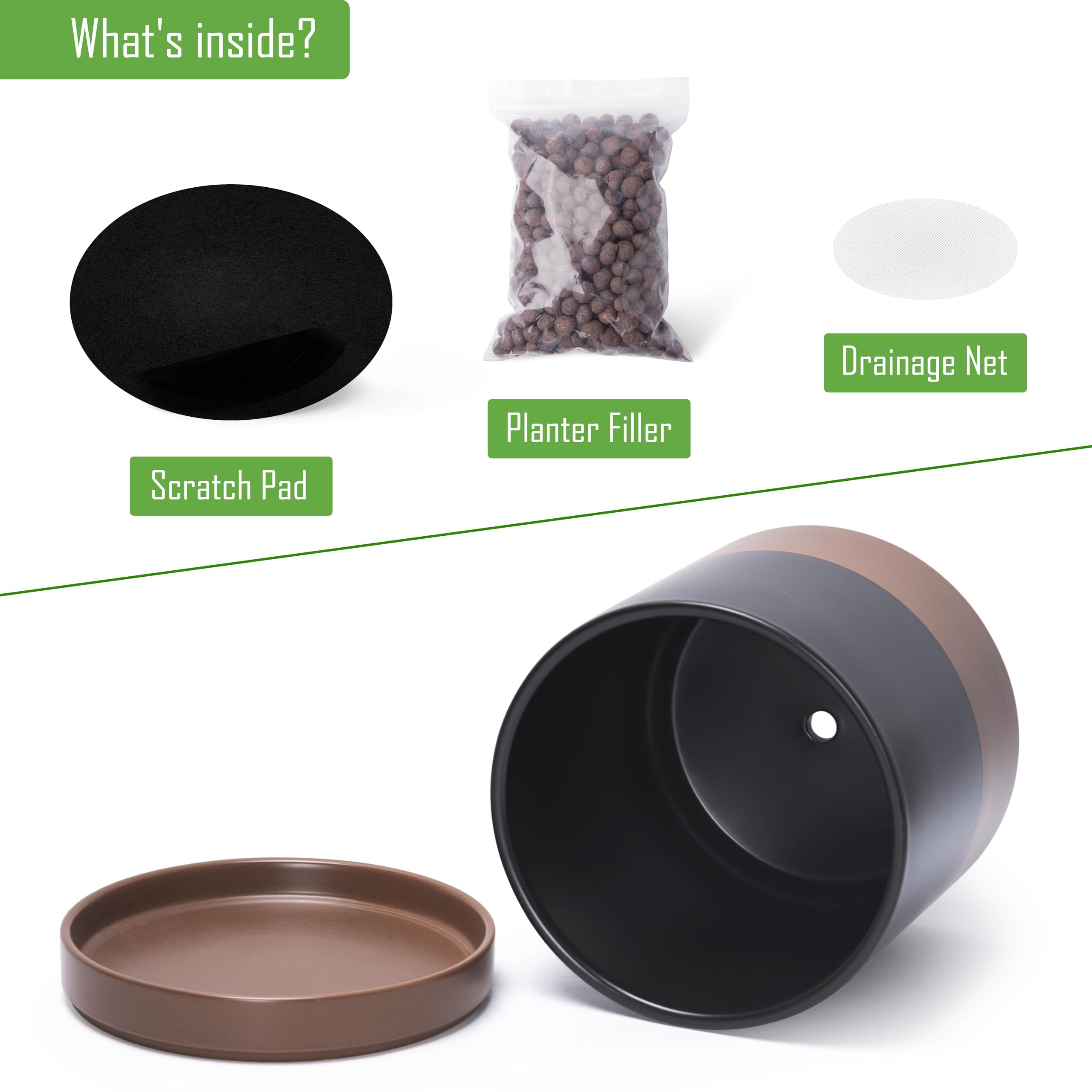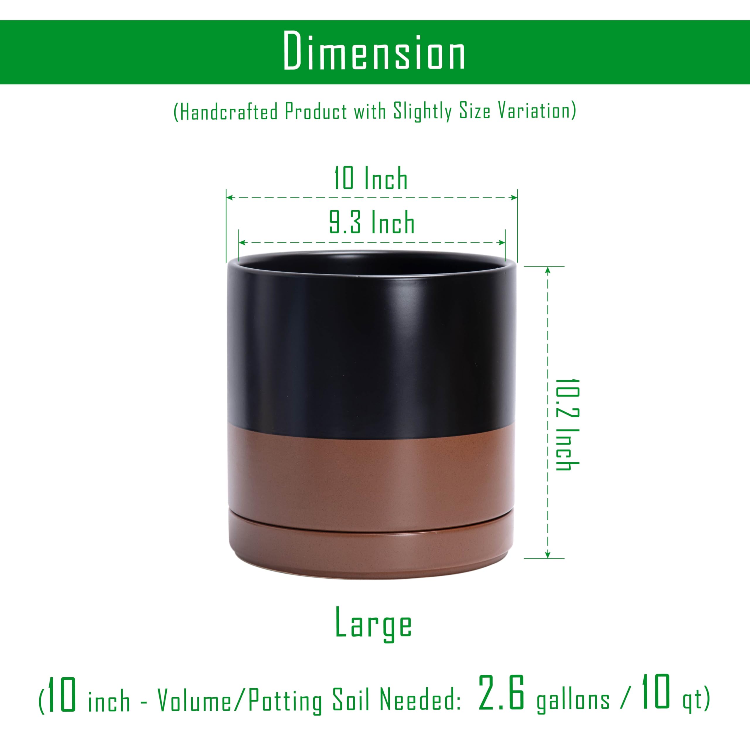 D'vine Dev 94-O-E-7 Keramik-Blumentopf mit Ablaufloch und Untersetzer, zylinderförmig, runder Blumentopf für den Innenbereich, Schwarz/Hellbraun gesprenkelt, 25,4 cm